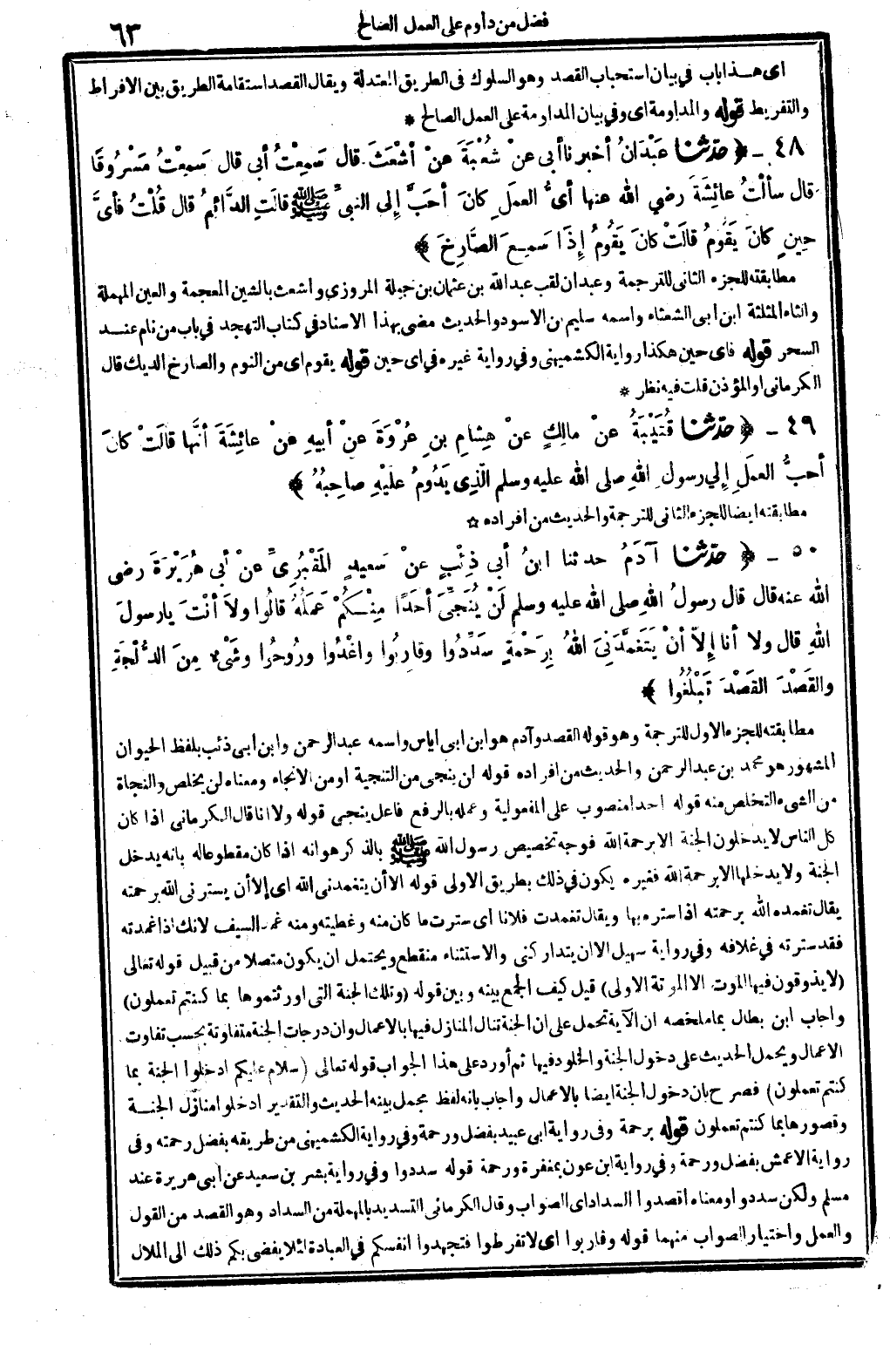 3646 - حدّثنا آدَمُ حَدثنَا ابنُ أبي ذِئْبٍ عنْ سَعِيدٍ المَقْبُرِيِّ عنْ أبي هُرَيْرَةَ رَضِي الله عَنهُ، قَالَ: قَالَ رسولُ الله صلى الله عَلَيْهِ وَسلم: (لَنْ يُنَجِّيَ أحدا مِنْكُمْ عَمَلُهُ) قالُوا: ولاَ أنْتَ يَا رسولَ الله صلى الله عَلَيْهِ وَسلم؟ قَالَ: (وَلَا أَنا، إلاّ أنْ يَتَغَمَّدَنِيَ الله بِرَحْمَةٍ، سَدِّدُوا وقارِبُوا واغْدُوا ورُوحُوا وشَيْءٌ مِن الدُّلْجَةِ والقَصْدَ القَصْدَ، تَبْلُغُوا) .