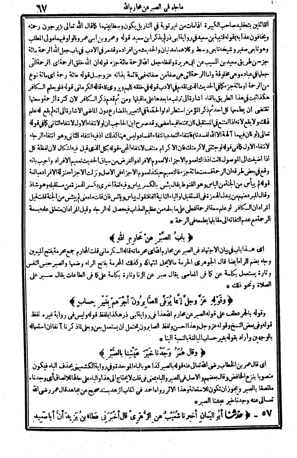 وَقَوْلِهِ عَزَّ وجلَّ: {إِنَّمَا يُوفى الصَّابِرُونَ أجرهم بِغَيْر حِسَاب} (الزمر: 01) [/ ح.