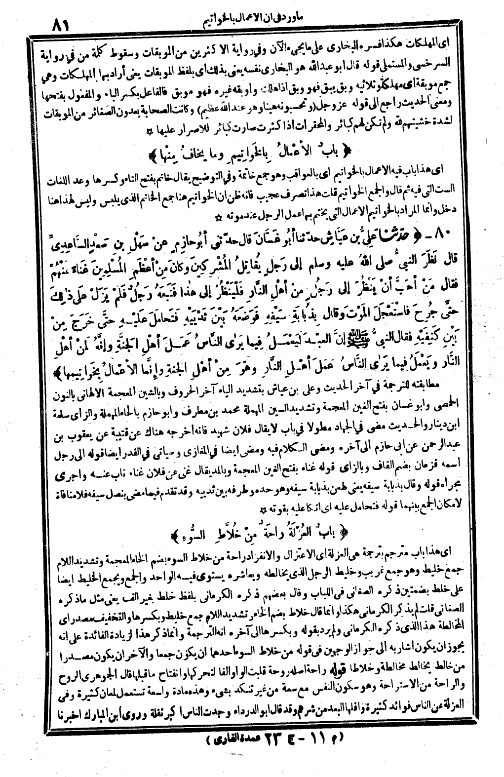 33 - (بابٌ الأعْمالُ بِالخَواتِيمِ وَمَا يخافُ مِنْها)