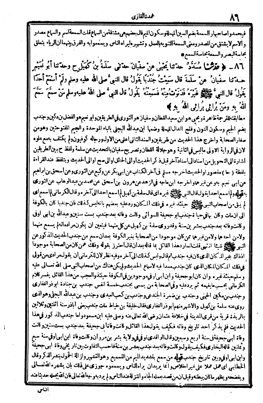 مطابقته للتَّرْجَمَة ظَاهِرَة. وَيحيى هُوَ ابْن سعيد الْقطَّان، وسُفْيَان هُوَ الثَّوْريّ فِي الطَّرِيقَيْنِ، وَأَبُو نعيم هُوَ الْفضل بن دُكَيْن، وجندب بِضَم الْجِيم وَسُكُون النُّون وَفتح الدَّال الْمُهْملَة وَضمّهَا ابْن عبد الله البَجلِيّ بِالْبَاء الْمُوَحدَة وَالْجِيم المفتوحتين وَهُوَ من صغَار الصَّحَابَة.