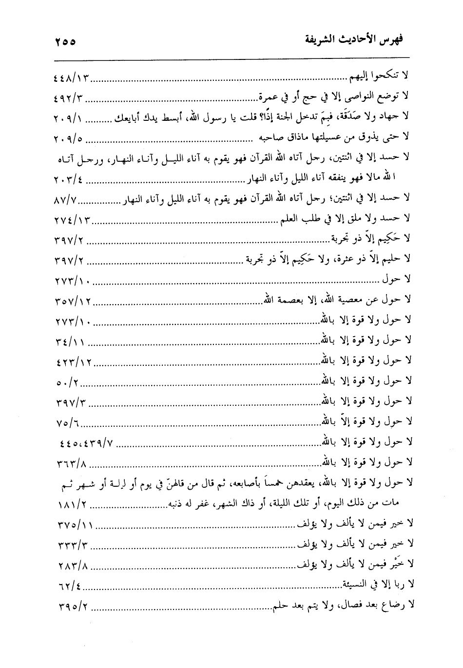 لا حَوْلَ وَلا قُوَّةَ إِلا بِاللَّهِ، يَعْقِدُهُنَّ خَمْسًا بِأَصَابِعِهِ، ثُمَّ قَالَ مَنْ قَالَهُنَّ فِي يَوْمٍ أَوْ لَيْلَةٍ أَوْ شَهْرٍ ثُمَّ مَاتَ مِنْ ذَلِكَ الْيَوْمِ، أَوْ تِلْكَ اللَّيْلَةِ، أَوْ ذاك الشهر، غفر له ذنبه 2/181