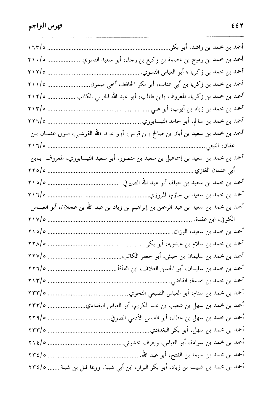 أَحْمَد بْن مُحَمَّد بْن سَعِيدِ بْن عَبْد الرَّحْمَنِ بْن إِبْرَاهِيم بْن زياد بْن عَبْد الله بن عجلان، أبو العباس الكوفي، ابن عقدة 5/217