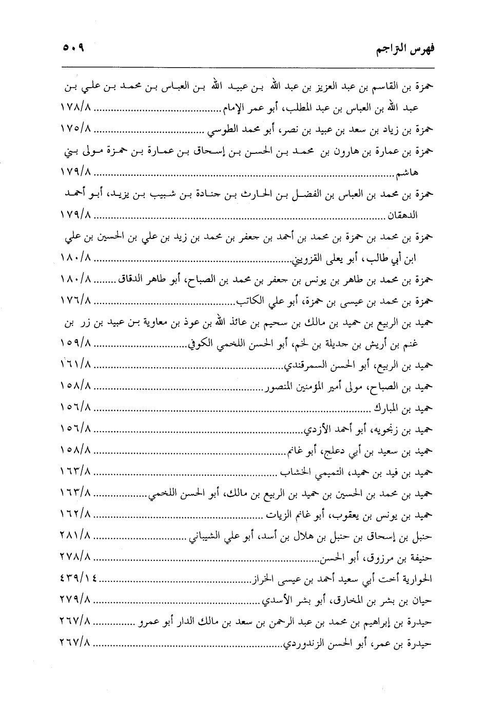 حمزة بْن عمارة بْن هارون بْن مُحَمَّد بْن الْحَسَن بْن إسحاق بْن عمارة بْن حمزة مولى بني هاشم 8/179