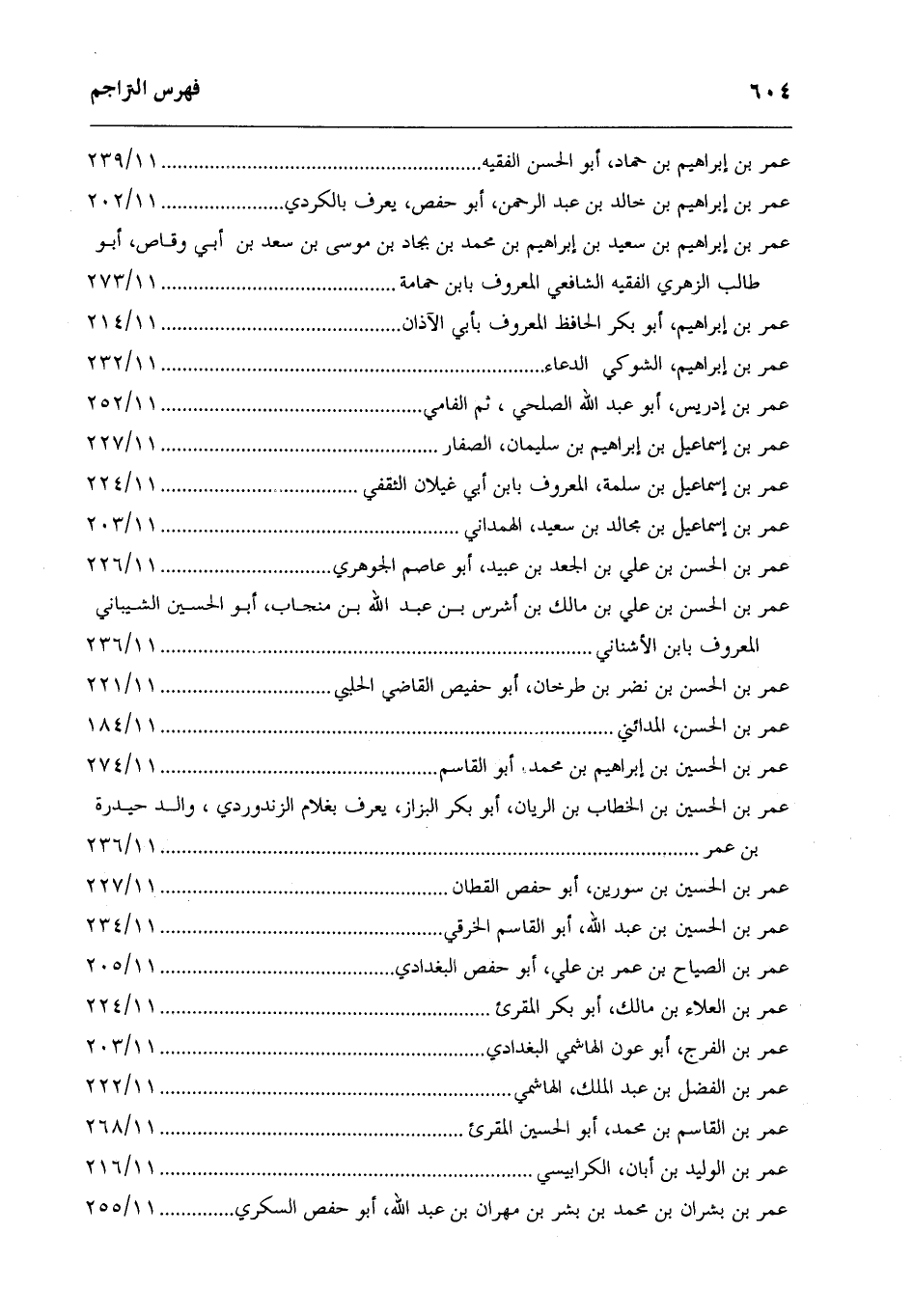 عُمَرَ بْن الْحُسَيْن بْن الخطاب بْن الريان، أَبُو بكر البزاز، يعرف بغلام الزندوردي، والد حيدرة بن عمر 11/236
