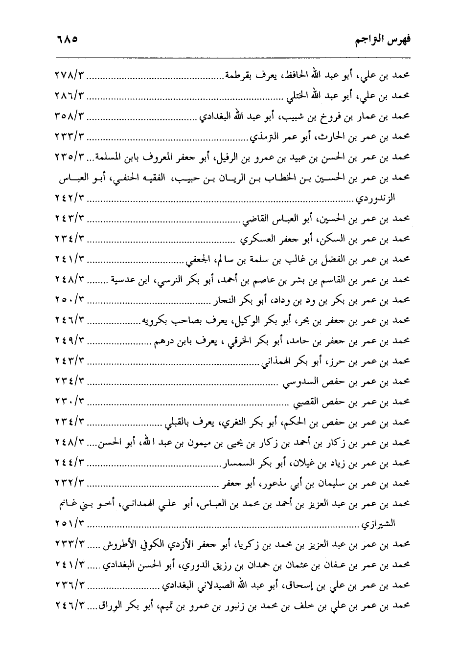 مُحَمَّدُ بْنُ عُمَرَ بْنِ عَلِيِّ بْنِ خَلَفِ بن محمد بن زنبور بن عمرو بن تميم، أبو بكر الوراق 3/246