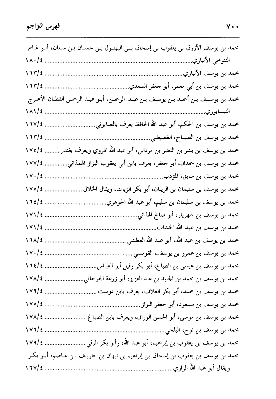 مُحَمَّدُ بْنُ يُوسُفَ بْنِ يَعْقُوبَ بْنِ إِسْحَاقَ بْن إِبْرَاهِيم بْن نبهان بن طريف بن عاصم، أبو بكر ويقال أبو عبد الله الرازي 4/167