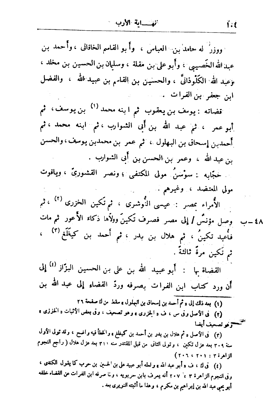 الأمراء بمصر: عيسى النّوشرى، ثم تكين الخزرى «2» ، ثم وصل مؤنس/ إلى مصر فصرف تكين وولّاها ذكاء الأعور ثم مات فأعيد تكين، ثم هلال بن بدر، ثم أحمد بن كيغلغ «3» ، ثم تكين مرة ثالثة.