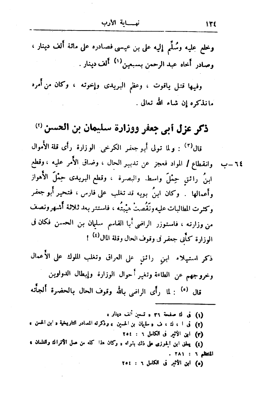 قال «3» : ولما تولى أبو جعفر الكرخى الوزارة رأى قلة الأموال وانقطاع/ المواد فعجز عن تدبير الحال، وضاق الأمر عليه، وقطع ابن رائق حمل واسط والبصرة، وقطع البريدى حمل الأهواز وأعمالها. وكان ابن بويه قد تغلب على فارس، فتحير أبو جعفر وكثرت المطالبات عليه ونقصت هيبته، فاستتر بعد ثلاثة أشهر ونصف من وزارته، فاستوزر الراضى أبا القاسم سليمان بن الحسن فكان فى الوزارة كأبى جعفر فى وقوف الحال وقلة المال «4» ! ذكر استيلاء ابن رائق على العراق وتغلب الملوك على الأعمال وخروجهم عن الطاعة وتغير أحوال الوزارة وإبطال الدواوين قال «5» : لما رأى الراضى بالله وقوف الحال بالحضرة ألجأته