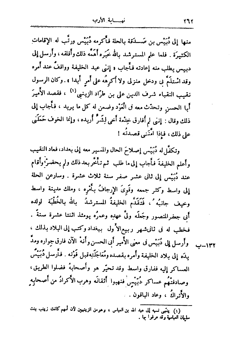 منها إلى دبيس بن صدقة بالحلة فأكرمه دبيس ورتّب له الإقامات الكثيرة. فلما علم المسترشد بالله خبره أهمّه ذلك وأقلقه، وأرسل إلى دبيس يطلب منه إعادته فأجاب «إننى عبد الخليفة وواقف عند أمره وقد استذمّ بى ودخل منزلى ولا أكرهه على أمر أبدا» . وكان الرسول نقيب النقباء شرف الدين على بن طرّاد الزينبى «1» ، فقصد الأمير أبا الحسن وتحدّث معه فى العود وضمن له كل ما يريد، فأجاب إلى ذلك وقال: إننى لم أفارق خدمة أخى لشرّ أريده، وإنما الخوف حملنى على ذلك، فإذا امّننى قصدته! وتكفّل له دبيس إصلاح الحال والمسير معه إلى بعداد، فعاد النقيب وأعلم الخليفة فأجاب إلى ما طلب ثم تأخّر بعد ذلك ولم يحضر وأقام عند دبيس إلى ثانى عشر صفر سنة ثلاث عشرة. وسار عن الحلة إلى واسط وكثر جمعه وقوى الإرجاف بأمره، وملك مدينة واسط وخيف جانبه، فتقدّم الخليفة المسترشد بالله بالخطبة لولده أبى جعفر المنصور وجعله ولىّ عهده وعمره يومئذ اثنتا عشرة سنة.