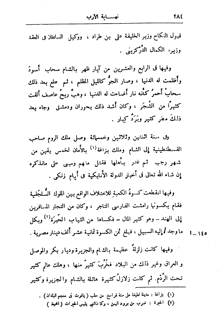وفيها كانت زلزلة عظيمة بالشام والجزيرة وديار بكر والموصل والعراق وغير ذلك من البلاد فخرّب كثير منها، وهلك عالم كثير تحت الرّدم. ثم كانت زلازل كثيرة هائلة بالشام والجزيرة وكثير