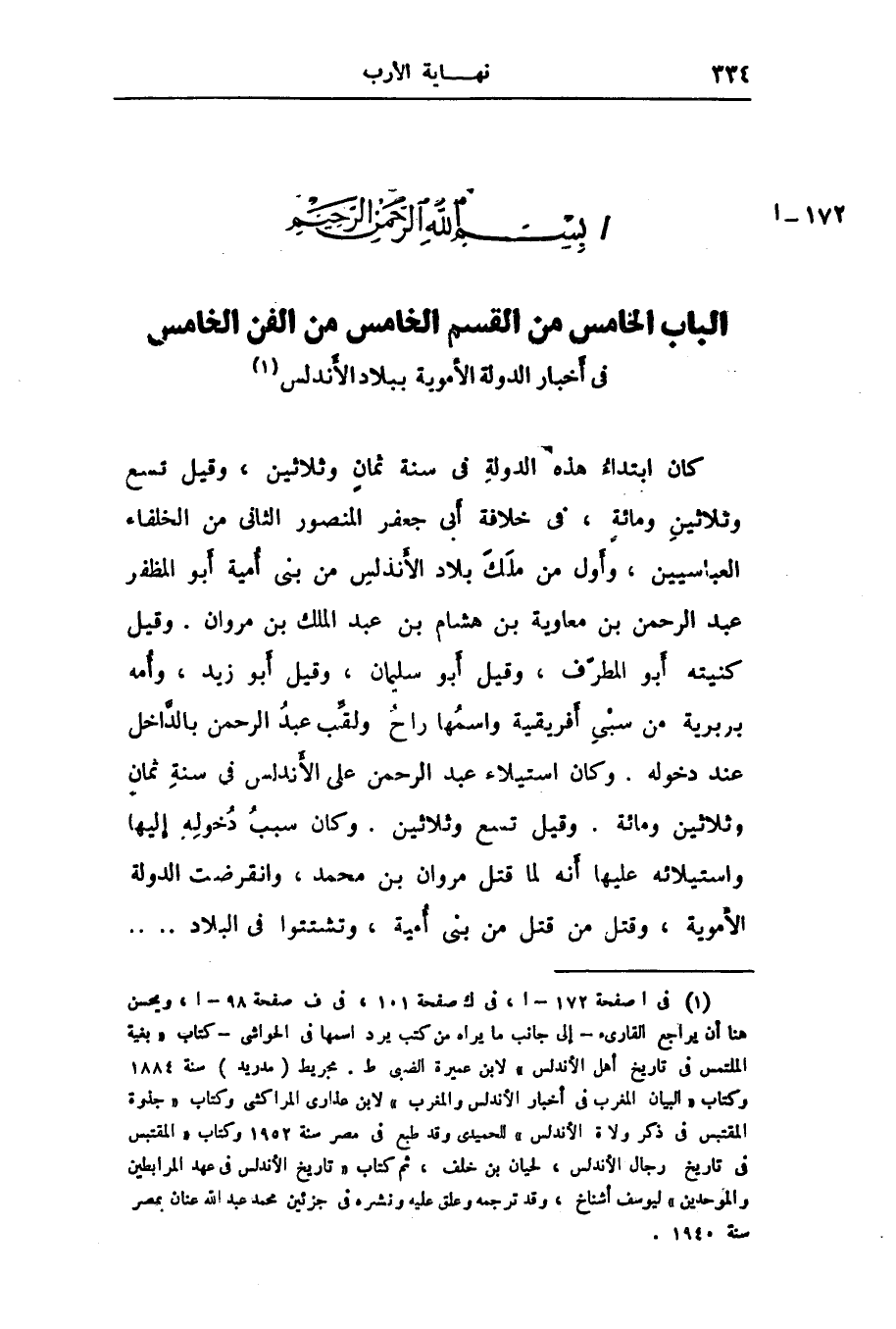 الباب الخامس من القسم الخامس من الفن الخامس فى أخبار الدولة الأموية ببلاد الأندلس «1»