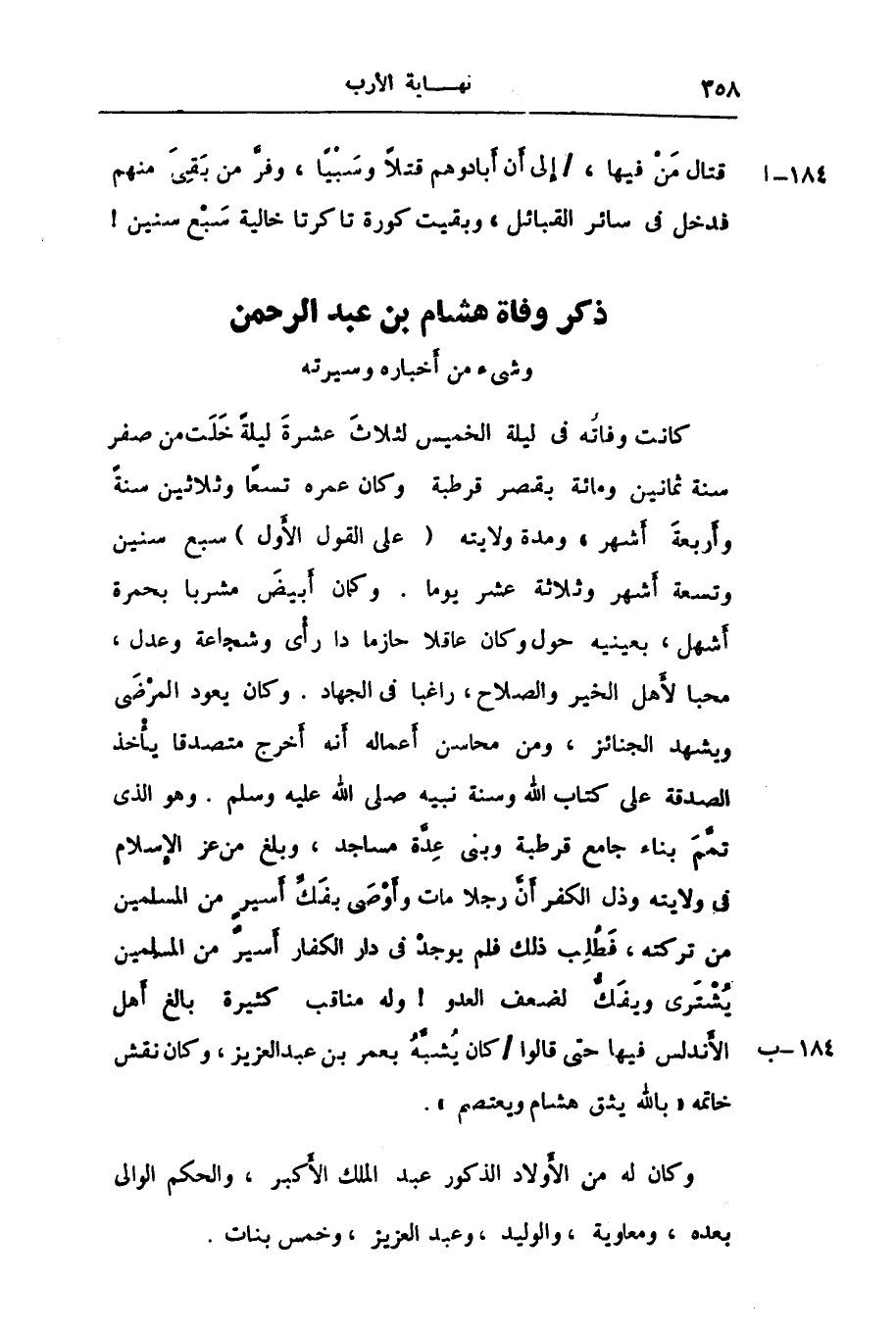 ذكر وفاة هشام بن عبد الرحمن وشىء من أخباره وسيرته