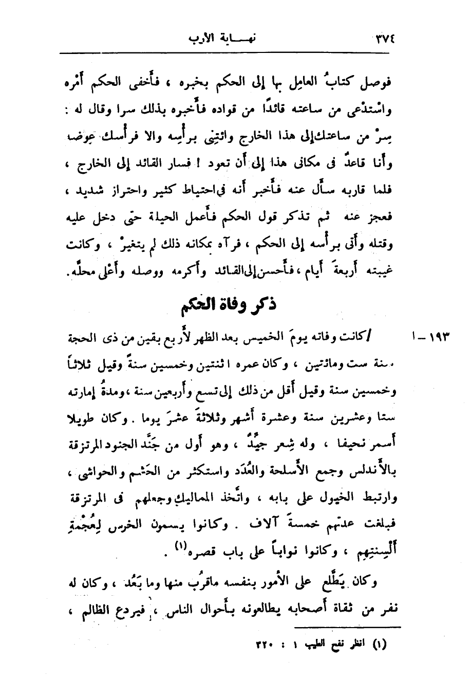 فوصل كتاب العامل بها إلى الحكم بخبره، فأخفى الحكم أمره واستدعى من ساعته قائدا من قواده فأخبره بذلك سرا وقال له: