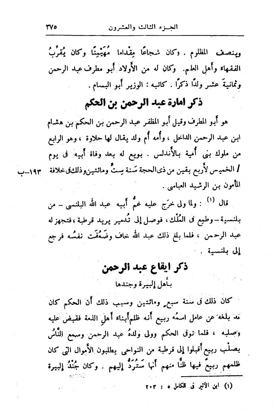 وينصف المظلوم. وكان شجاعا مقداما مهيمنا وكان يقرّب الفقهاء وأهل العلم. وكان له من الأولاد أبو مطرف عبد الرحمن وثمانية عشر ولدا ذكرا. كاتبه: الوزير أبو البسام.