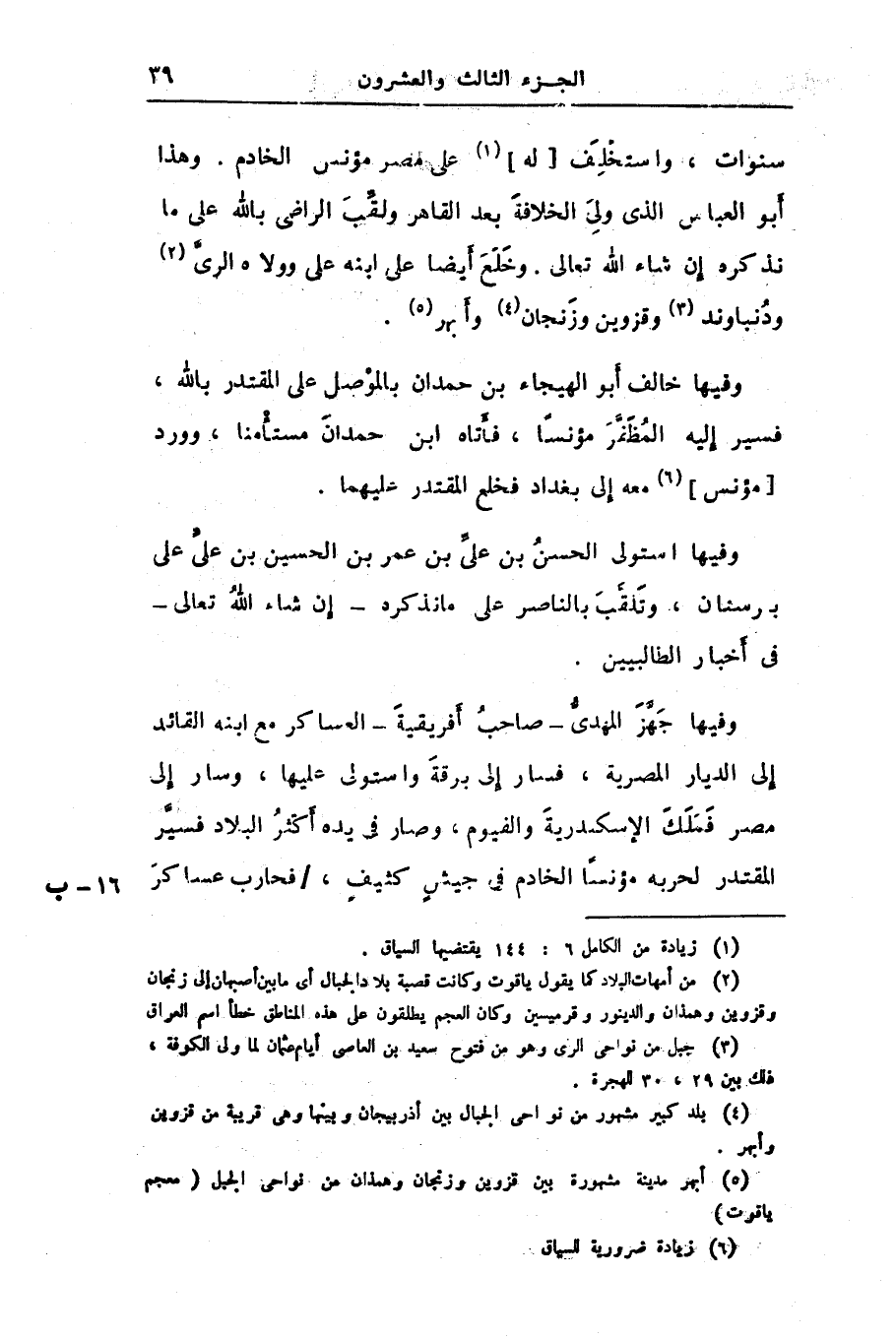 سنوات، واستخلف [له] «1» على مصر مؤنس الخادم. وهذا أبو العباس الذى ولى الخلافة بعد القاهر ولقّب الراضى بالله على ما نذكره إن شاء الله تعالى. وخلع أيضا على ابنه على وولاه الرىّ «2» ودنباوند «3» وقزوين وزنجان «4» وأبهر «5» .