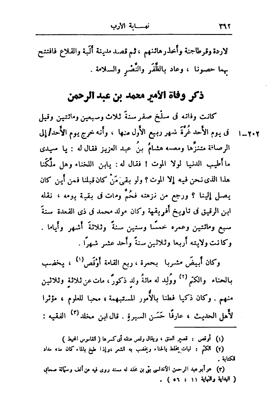 ذكر وفاة الأمير محمد بن عبد الرحمن