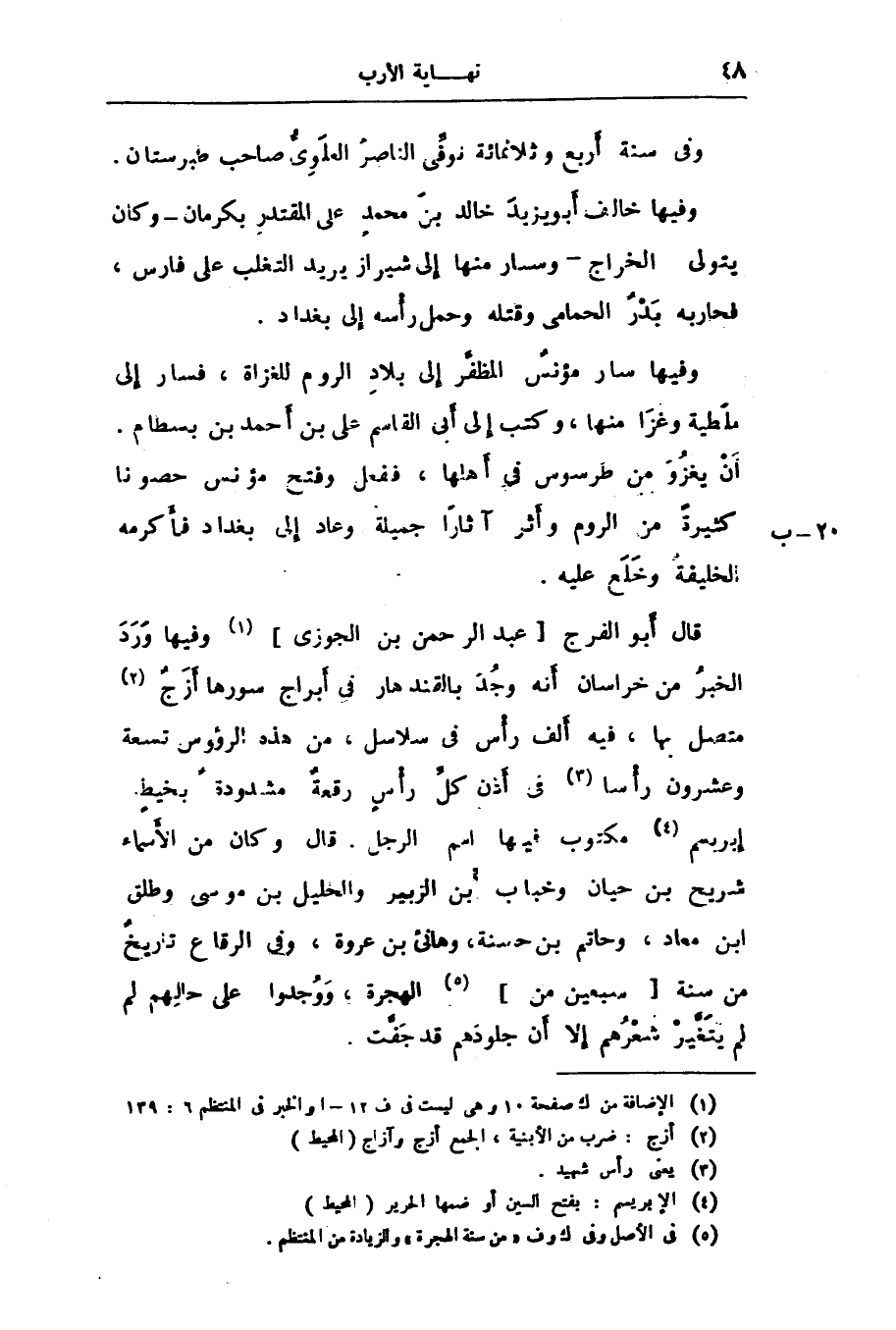 وفيها سار مؤنس المظفّر إلى بلاد الروم للغزاة، فسار إلى ملطية وغزا منها، وكتب إلى أبى القاسم على بن أحمد بن بسطام.