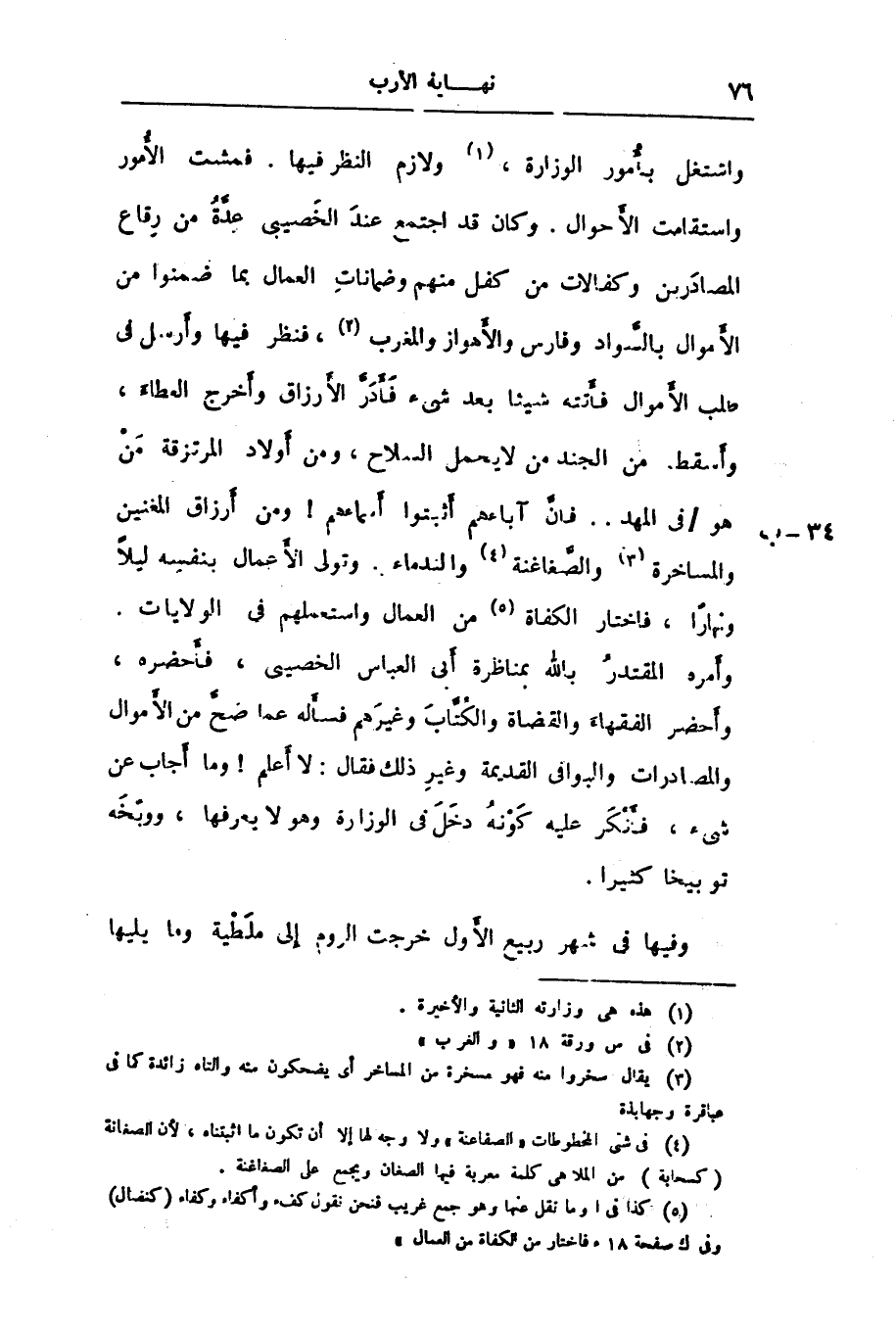 واشتغل بأمور الوزارة، «1» ولازم النظر فيها. فمشت الأمور واستقامت الأحوال. وكان قد اجتمع عند الخصيبى عدّة من رقاع المصادرين وكفالات من كفل منهم وضمانات العمال بما ضمنوا من الأموال بالسّواد وفارس والأهواز والمغرب «2» ، فنظر فيها وأرسل فى طلب الأموال فأتته شيئا بعد شىء فأدرّ الأرزاق وأخرج العطاء، وأسقط من الجند من لا يحمل السلاح، ومن أولاد المرتزقة من هو/ فى المهد.. فانّ آباءهم أثبتوا أسماءهم! ومن أرزاق المغنين والمساخرة «3» والصّغاغنة «4» والندماء. وتولى الأعمال بنفسه ليلا ونهارا، فاختار الكفاة «5» من العمال واستعملهم فى الولايات.