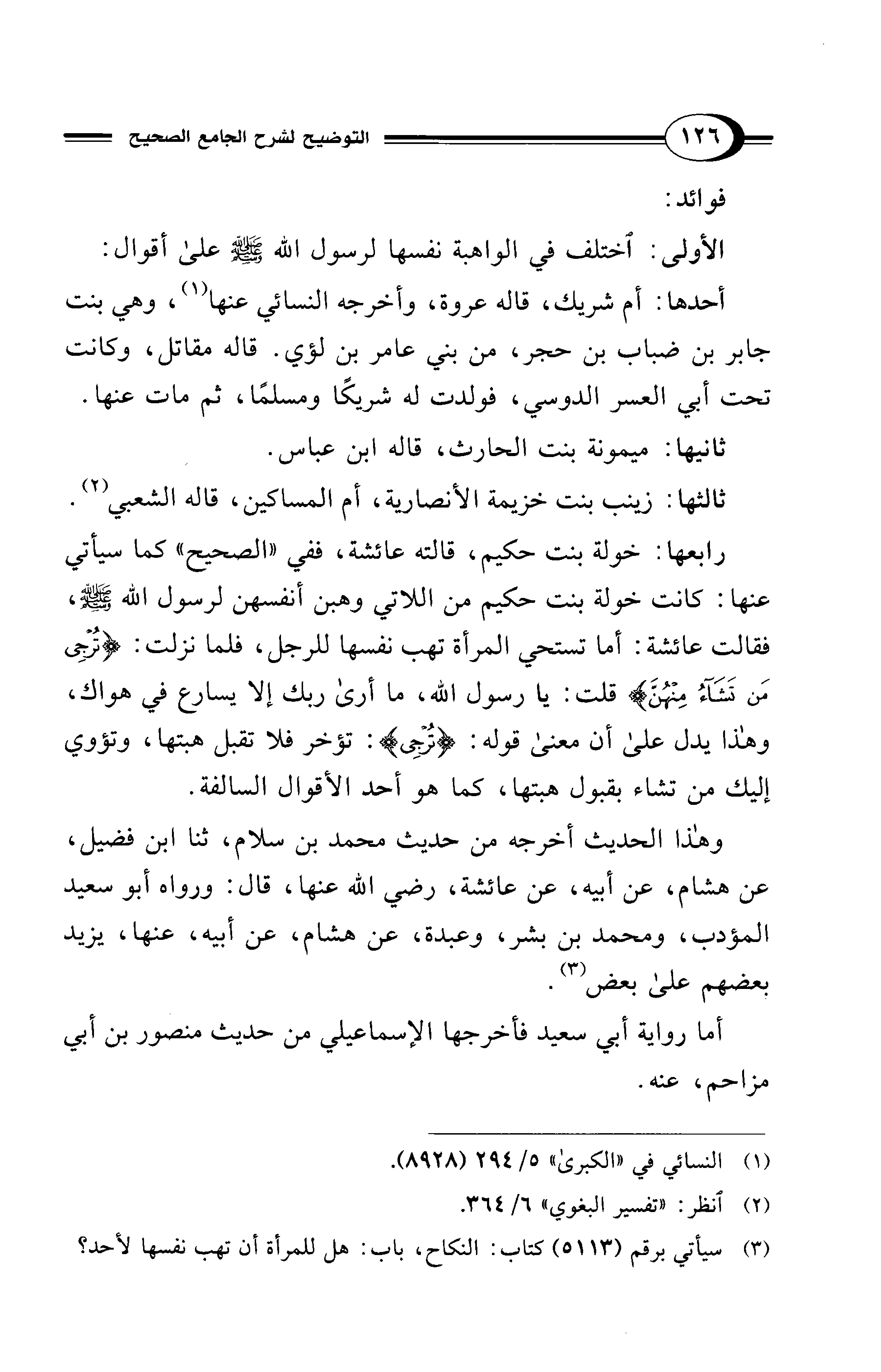 (¬3) سيأتي برقم (5113) كتاب: النكاح، باب: هل للمرأة أن تهب نفسها لأحد؟