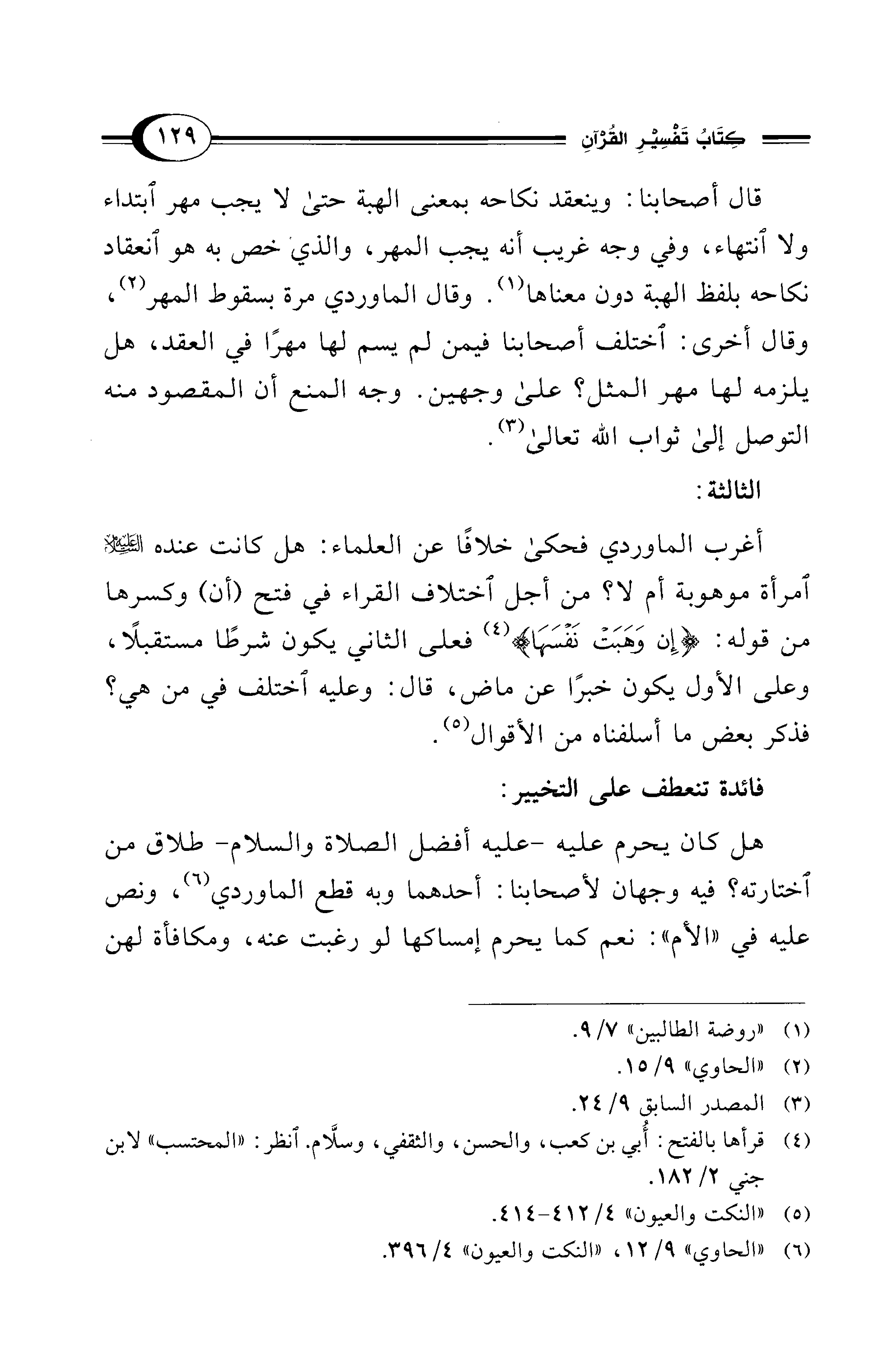 (¬6) "الحاوي" 9/ 12، "النكت والعيون" 4/ 396.