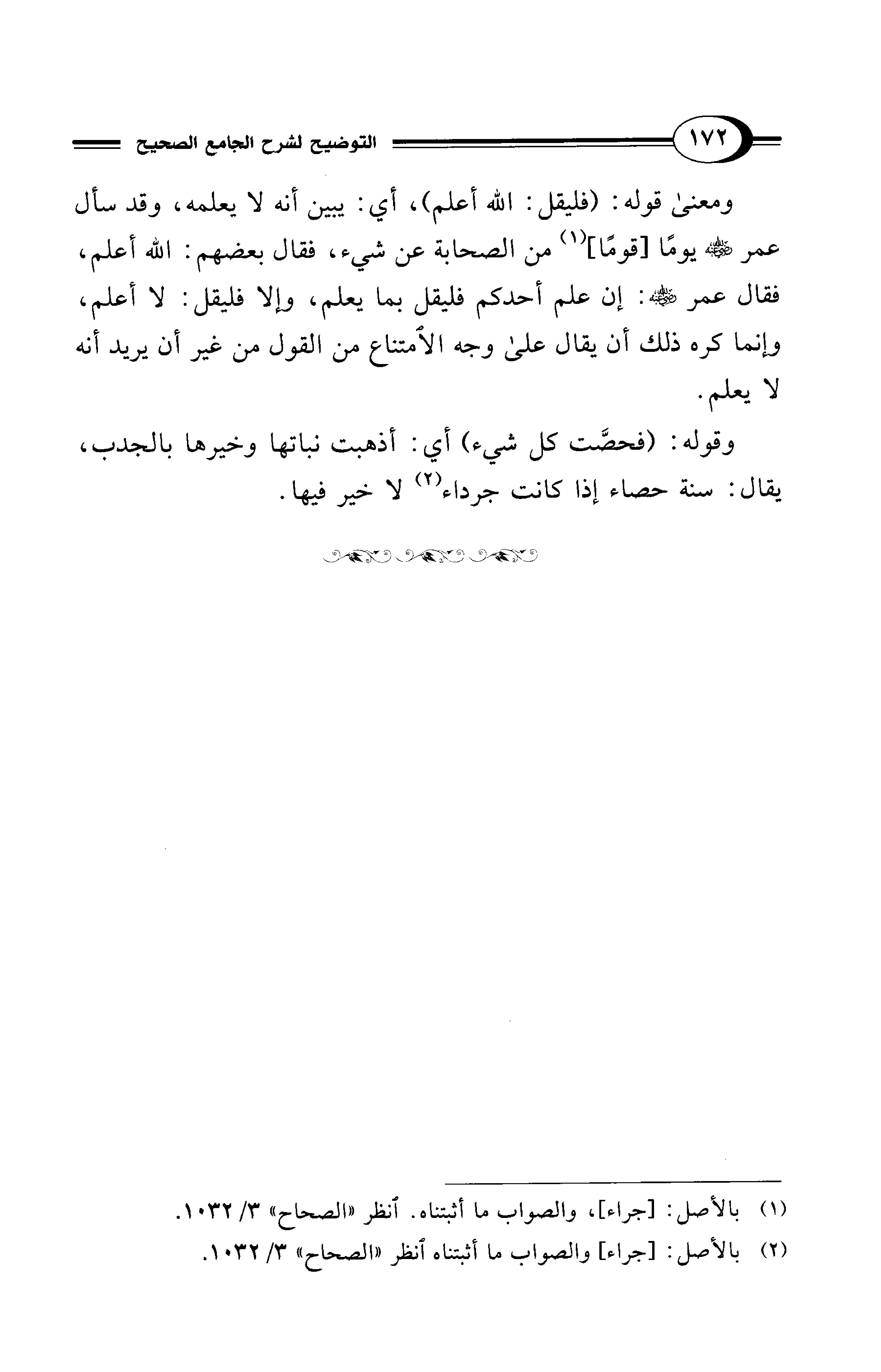 ومعنى قوله: (فليقل: الله أعلم)، أي: يبين أنه لا يعلمه، وقد سأل عمر - رضي الله عنه - يومًا [قومًا] (¬1) من الصحابة عن شيء، فقال بعضهم: الله أعلم، فقال عمر - رضي الله عنه -: إن علم أحدكم فليقل بما يعلم، وإلا فليقل: لا أعلم، وإنما كره ذلك أن يقال على وجه الامتناع من القول من غير أن يريد أنه لا يعلم.