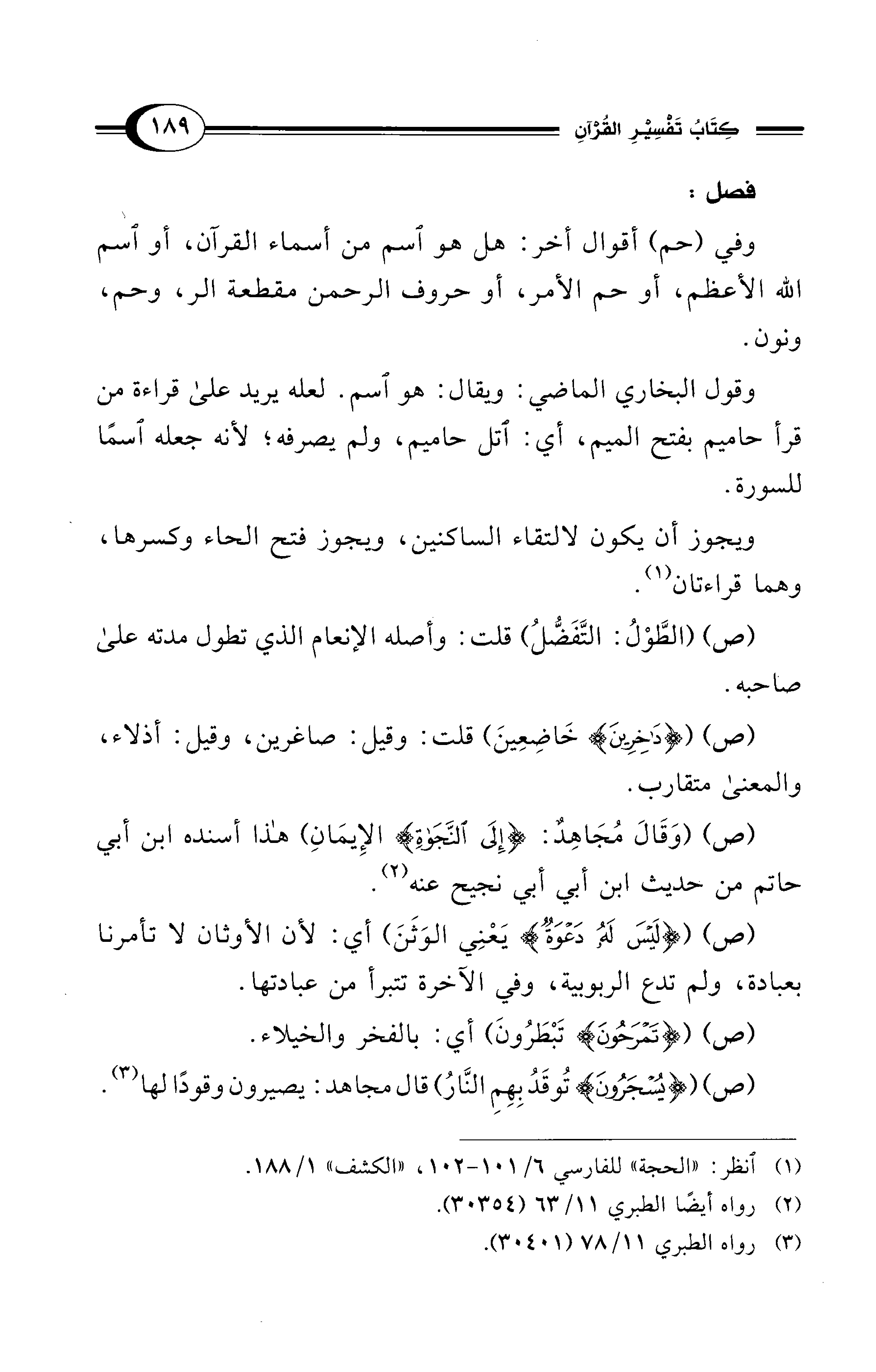 (¬1) انظر: "الحجة" للفارسي 6/ 101 - 102، "الكشف" 1/ 188.