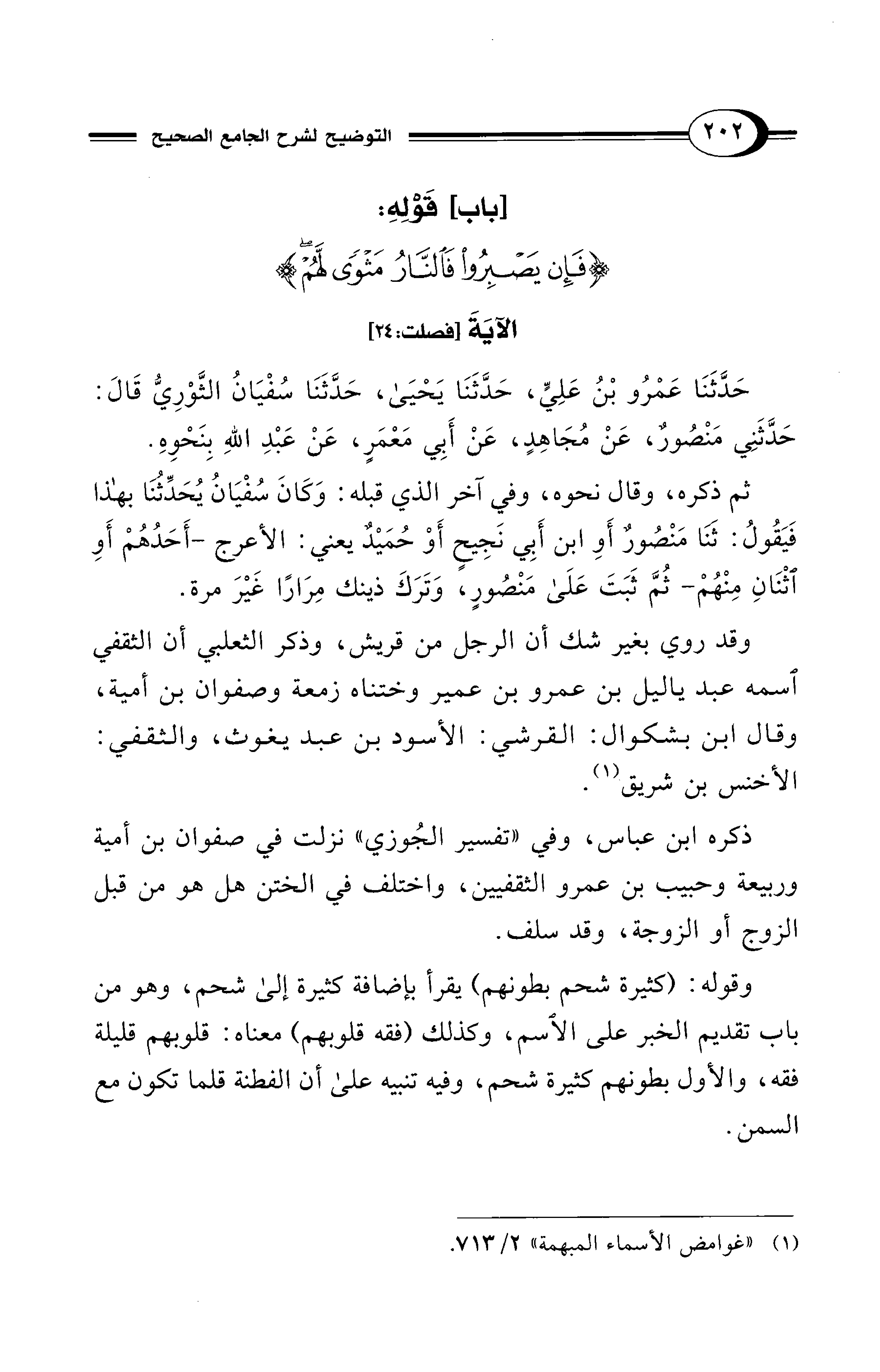 [باب] قَوْلِهِ: {فَإِنْ يَصْبِرُوا فَالنَّارُ مَثْوًى لَهُمْ} الآيَةَ [فصلت: 24]