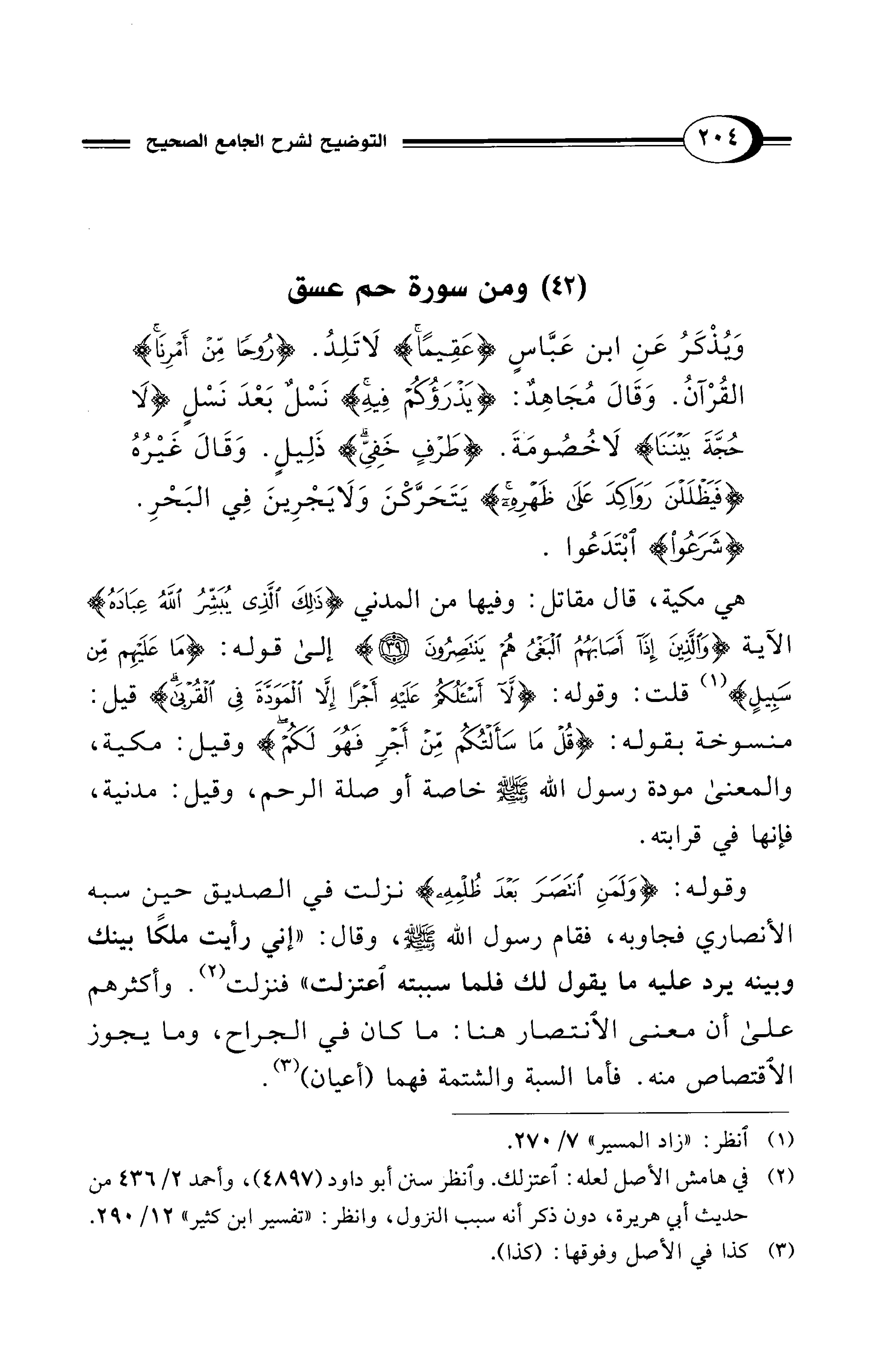 هي مكية، قال مقاتل: وفيها من المدني {ذَلِكَ الَّذِي يُبَشِّرُ اللهُ عِبَادَهُ} الآية {وَالَّذِينَ إِذَا أَصَابَهُمُ الْبَغْيُ هُمْ يَنْتَصِرُونَ (39)} إلى قوله: {مَا عَلَيْهِمْ مِنْ سَبِيلٍ} (¬1) قلت: وقوله: {لَا أَسْأَلُكُمْ عَلَيْهِ أَجْرًا إِلَّا الْمَوَدَّةَ فِي الْقُرْبَى} قيل: منسوخة بقوله: {قُلْ مَا سَأَلْتُكُمْ مِنْ أَجْرٍ فَهُوَ لَكُمْ} وقيل: مكية، والمعنى مودة رسول الله - صلى الله عليه وسلم - خاصة أو صلة الرحم، وقيل: مدنية، فإنها في قرابته.