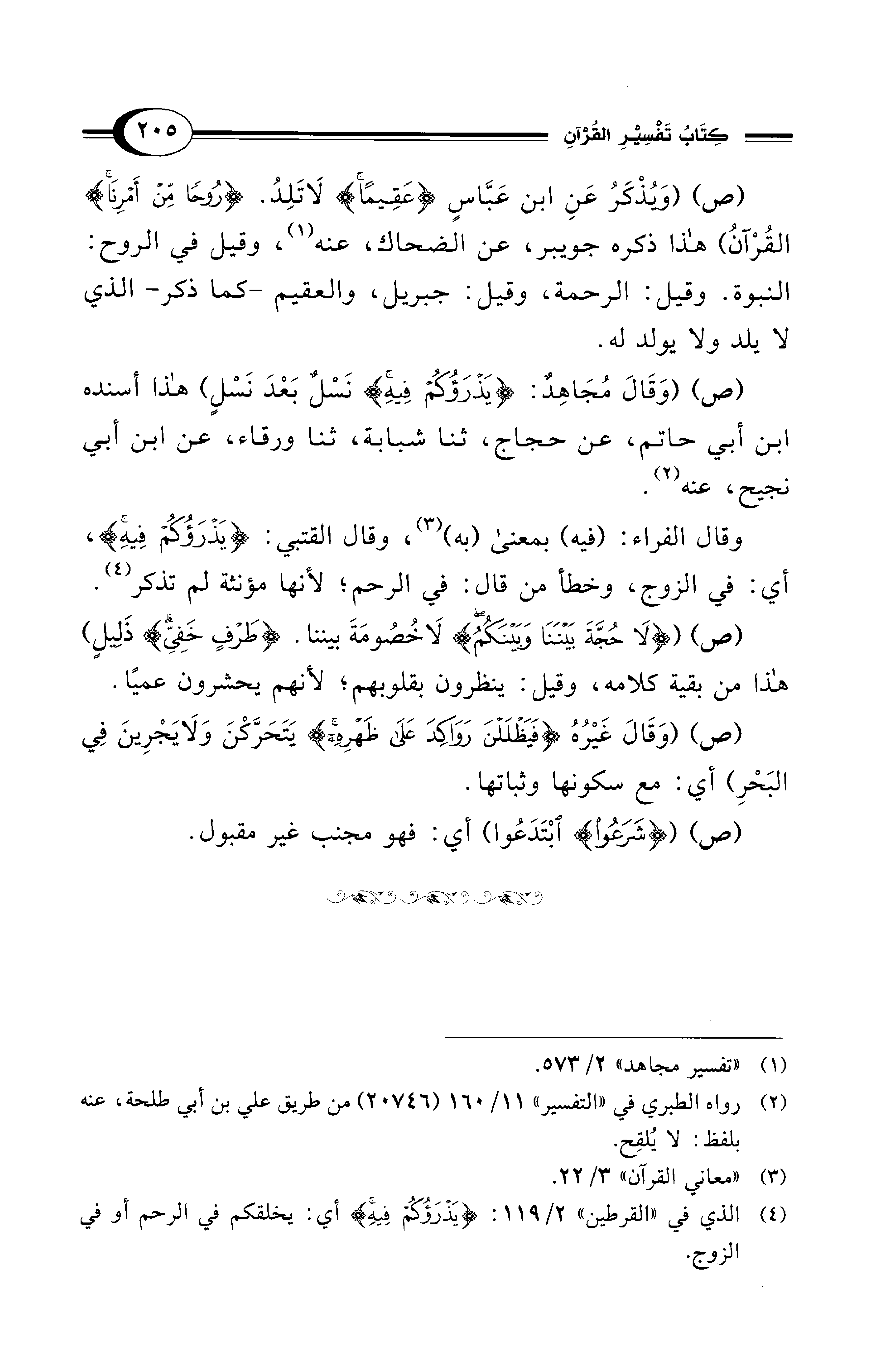 (¬4) الذي في "القرطين" 2/ 119: {يَذْرَؤُكُمْ فِيهِ} أي: يخلقكم في الرحم أو في الزوج.