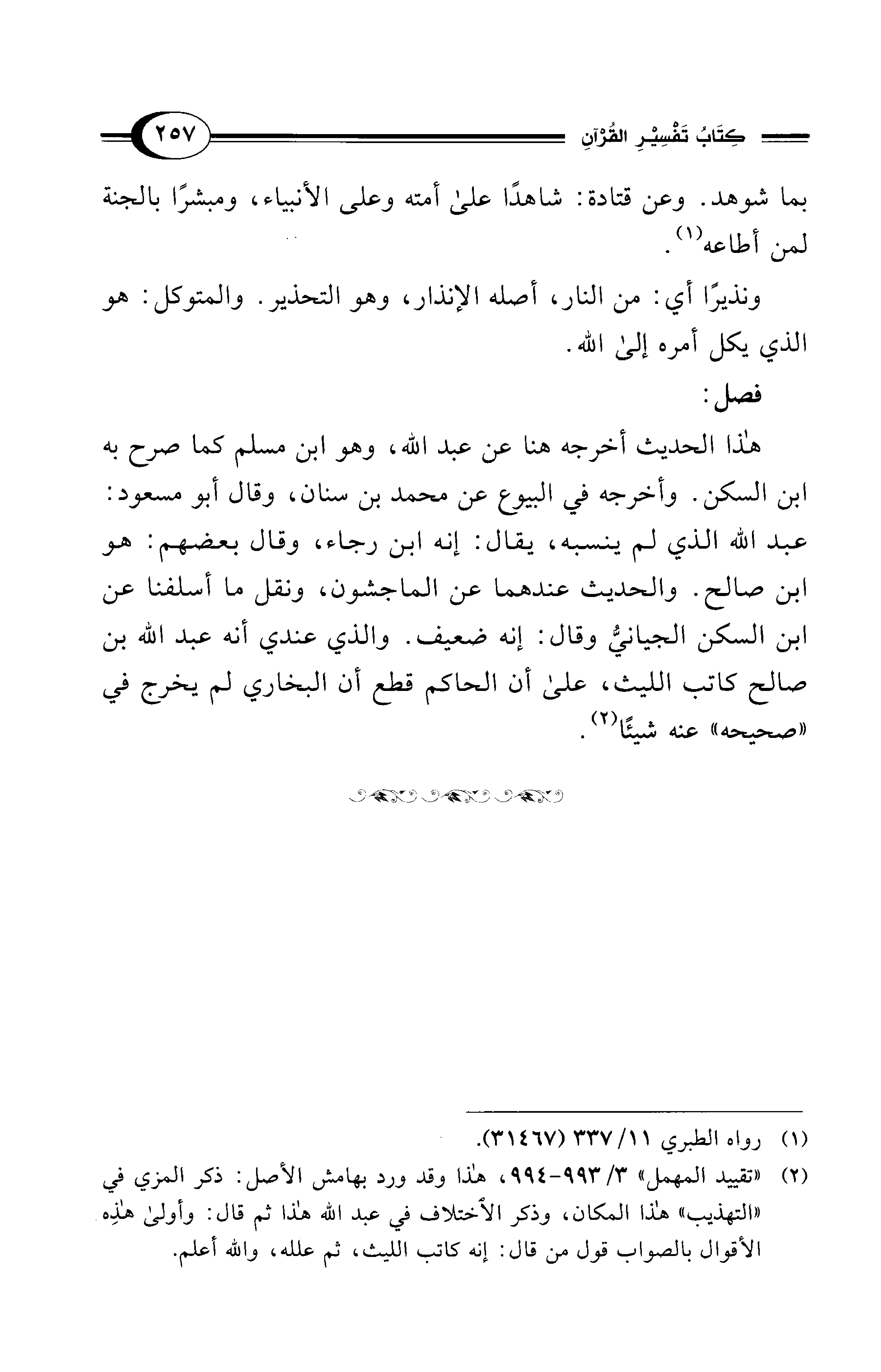 (¬2) "تقييد المهمل" 3/ 993 - 994، هذا وقد ورد بهامش الأصل: ذكر المزي في "التهذيب" هذا المكان، وذكر الاختلاف في عبد الله هذا ثم قال: وأولى هذِه الأقوال بالصواب قول من قال: إنه كاتب الليث، ثم علله، والله أعلم.