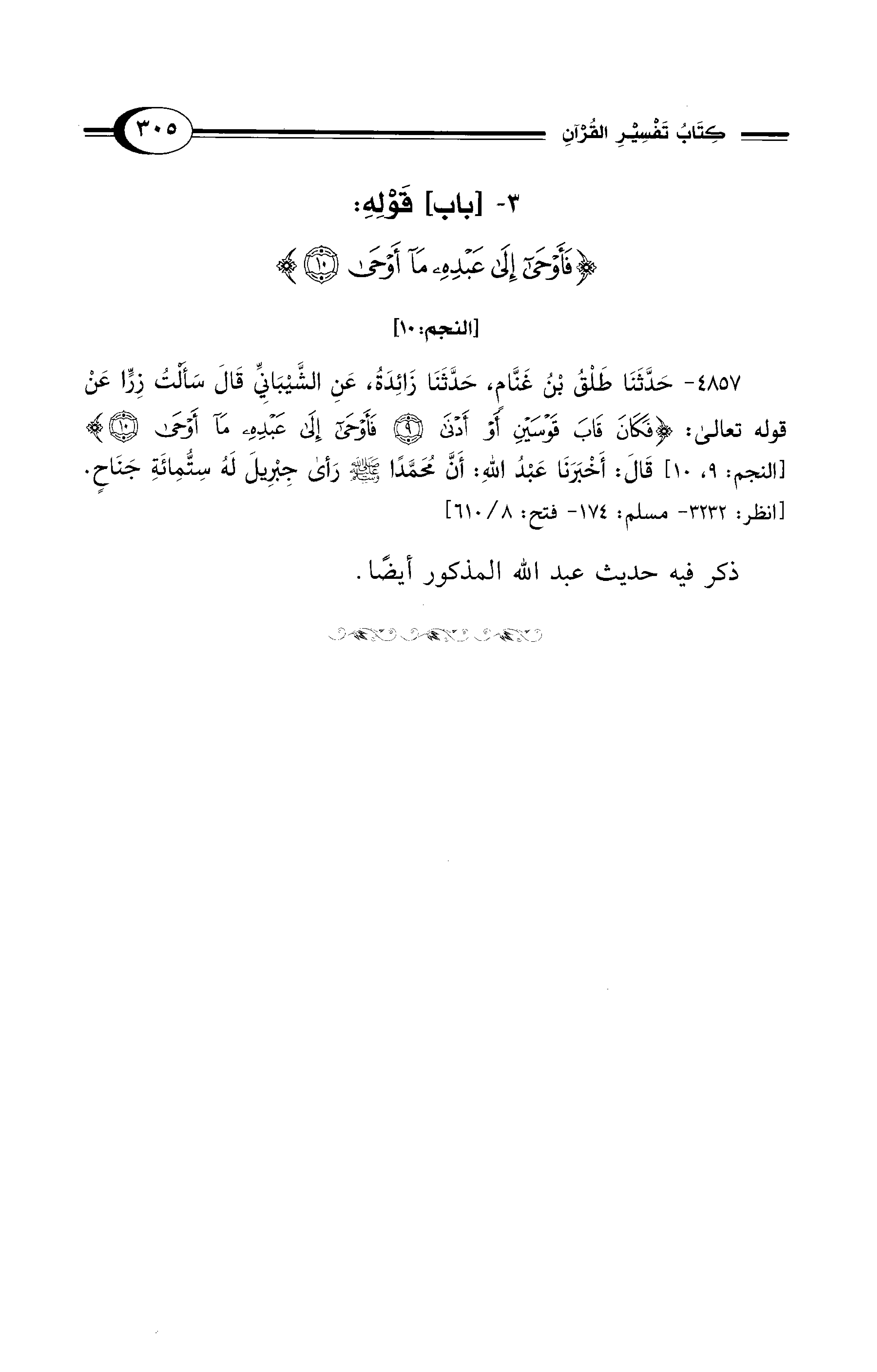 3 - [باب]؛ قَوْلِهِ: {فَأَوْحَى إِلَى عَبْدِهِ مَا أَوْحَى (10)} [النجم:10]