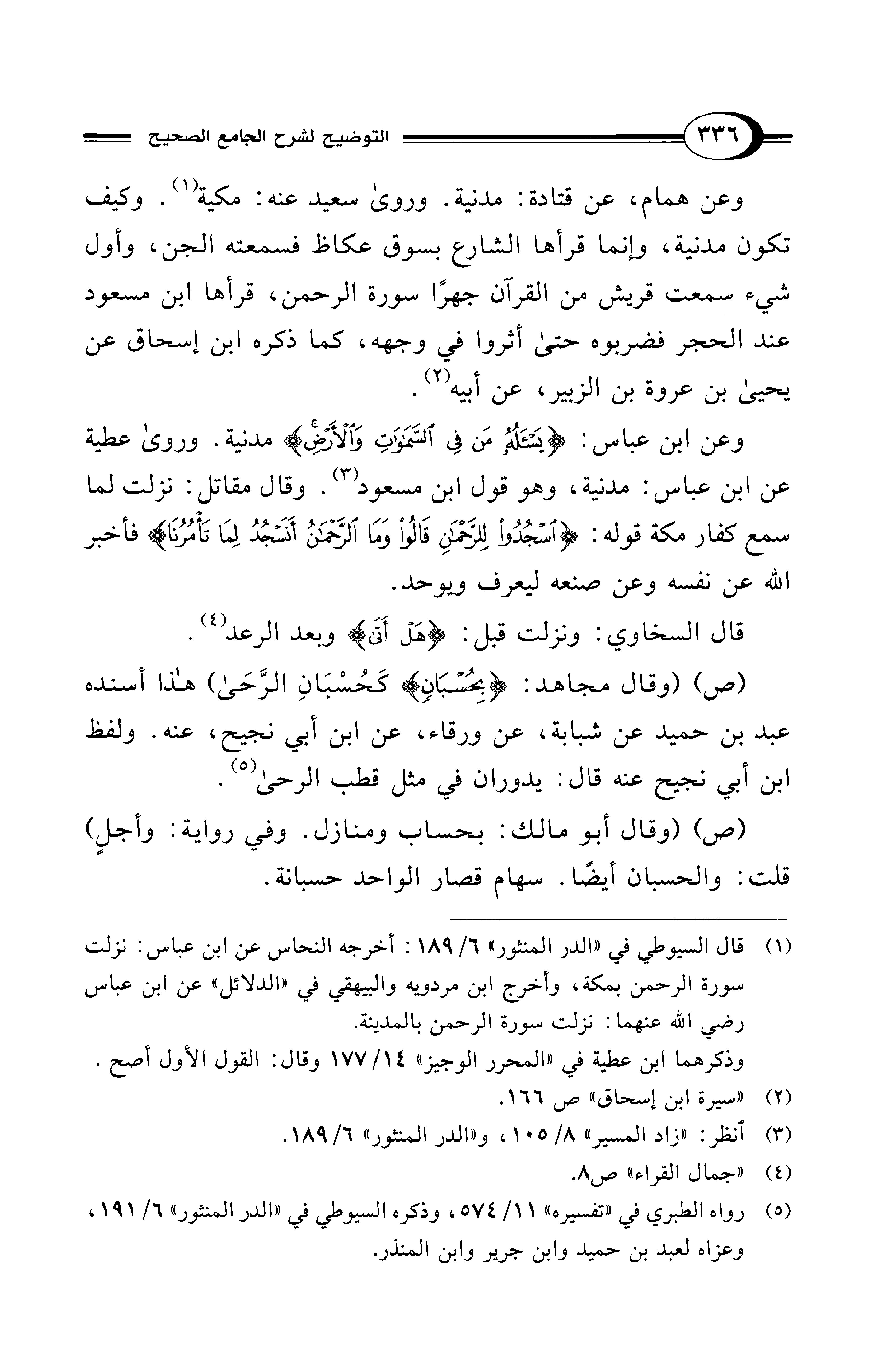 (¬1) قال السيوطي في "الدر المنثور" 6/ 189: أخرجه النحاس عن ابن عباس: نزلت سورة الرحمن بمكة، وأخرج ابن مردويه والبيهقي في "الدلائل" عن ابن عباس رضي الله عنهما: نزلت سورة الرحمن بالمدينة.