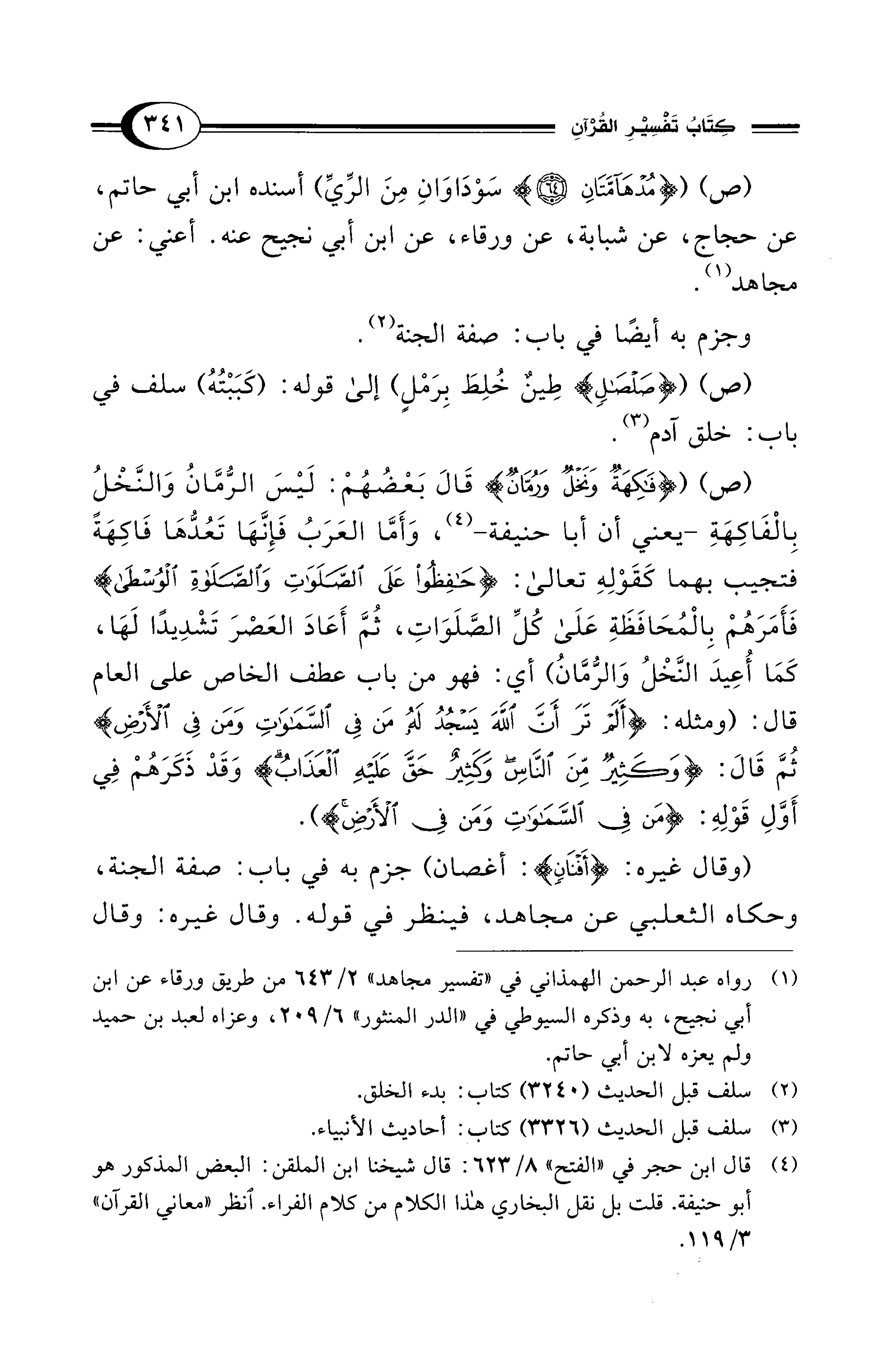 (ص) ({مُدْهَامَّتَانِ (64)} سَوْدَاوَانِ مِنَ الرِّيِّ) أسنده ابن أبي حاتم، عن حجاج، عن شبابة، عن ورقاء، عن ابن أبي نجيح عنه. أعني: عن مجاهد (¬1).