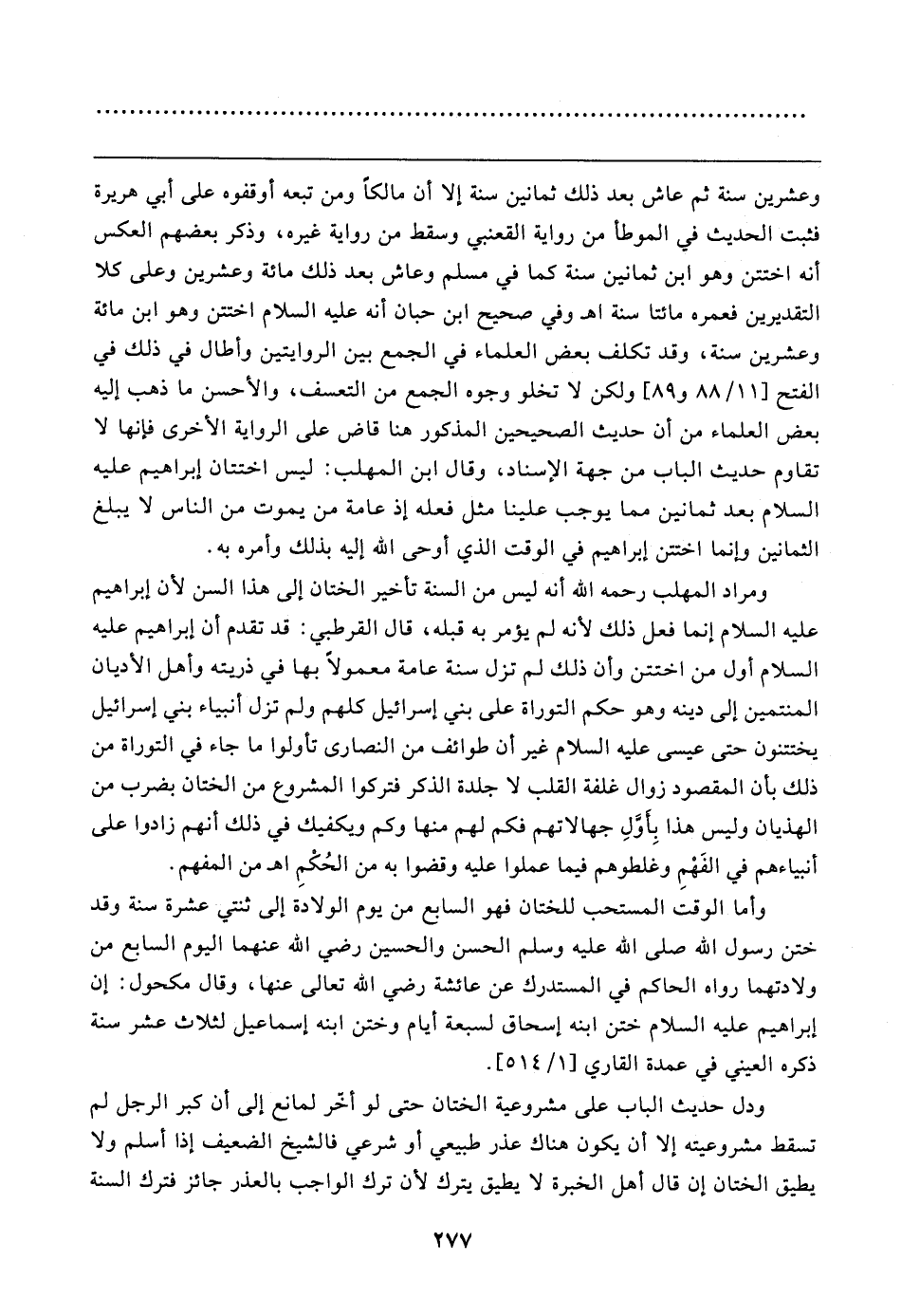 ومراد المهلب رحمه الله أنه ليس من السنة تأخير الختان إلى هذا السن لأن إبراهيم - عليه السلام - إنما فعل ذلك لأنه لم يؤمر به قبله، قال القرطبي: قد تقدم أن إبراهيم عليه السلام أول من اختتن وأن ذلك لم تزل سنة عامة معمولًا بها في ذريته وأهل الأديان المنتمين إلى دينه وهو حكم التوراة علي بني إسرائيل كلهم ولم تزل أنبياء بني إسرائيل يختتنون حتى عيسى - عليه السلام - غير أن طوائف من النصارى تأولوا ما جاء في التوراة من ذلك بان المقصود زوال غلفة القلب لا جلدة الذكر فتركوا المشروع من الختان بضرب من الهذيان وليس هذا بِأولِ جهالاتهم فكم لهم منها وكم ويكفيك في ذلك أنهم زادوا على أنبياءهم في الفَهْمِ وغلطوهم فيما عملوا عليه وقضوا به من الحُكْمِ اهـ من المفهم.
