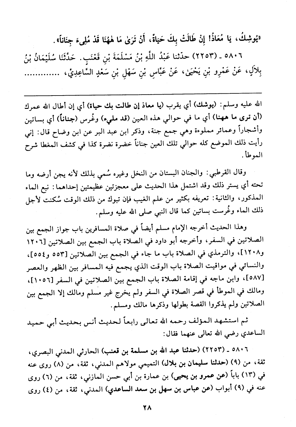 ٥٨٠٦ - (٢٢٥٣) حدَّثنا عَبْدُ اللهِ بن مَسْلَمَةَ بنِ قَعْنَبٍ. حَدَّثَنَا سُلَيمَانُ بْنُ بِلَالٍ، عَن عَمْرِو بْنِ يَحِيَى، عَنْ عَبَّاسِ بنِ سَهْلِ بْنِ سَعْدِ السَّاعِدِيِّ،