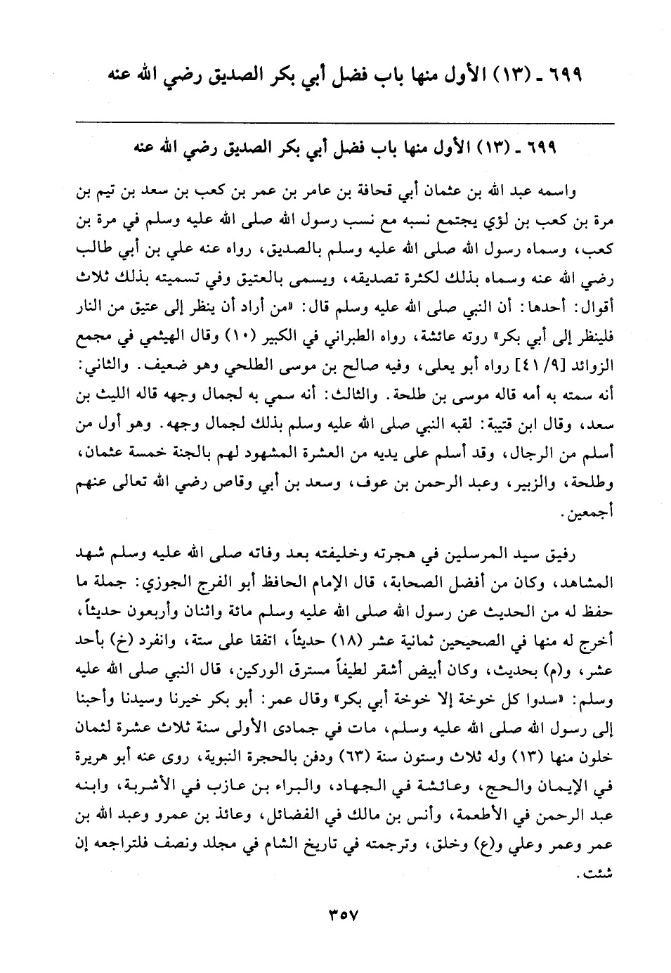٦٩٩ - (١٣) الأول منها باب فضل أبي بكر الصديق رضي الله عنه