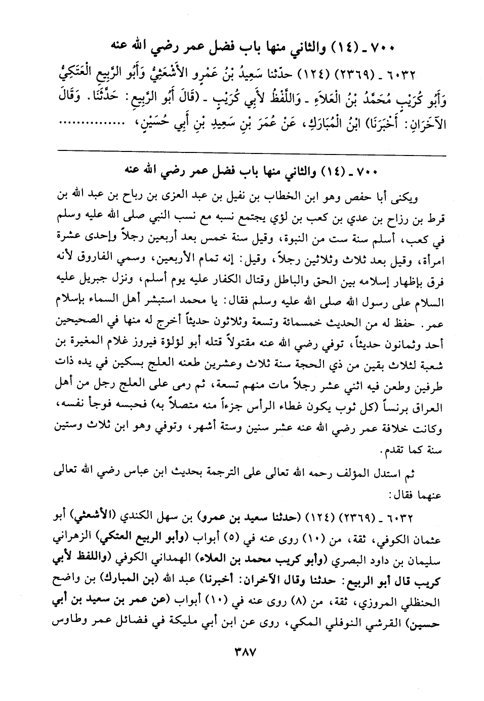 ٧٠٠ - (١٤) والثاني منها باب فضل عمر رضي الله عنه
