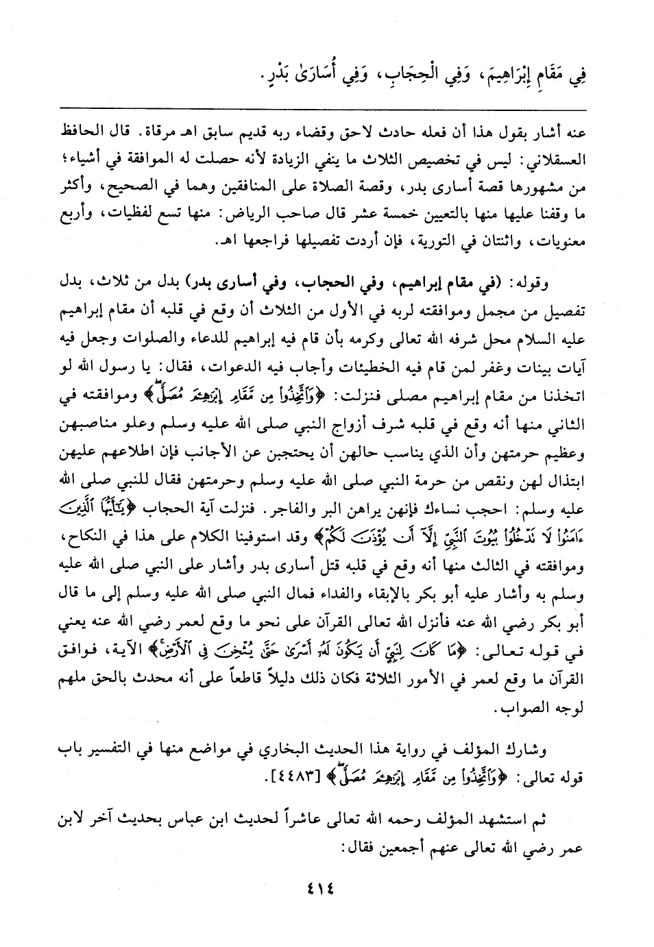 فِي مَقَامِ إِبْرَاهِيمَ، وَفِي الْحِجَابِ، وَفِي أُسَارَى بَدْرٍ