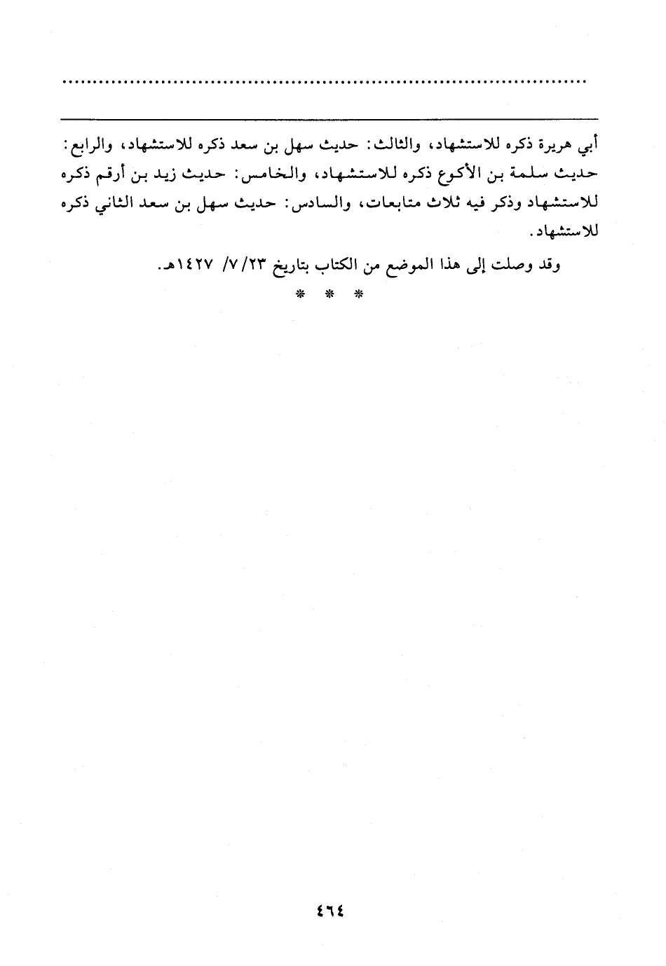 وقد وصلت إلى هذا الموضع من الكتاب بتاريخ ٢٣/ ٧ / ١٤٢٧ هـ.