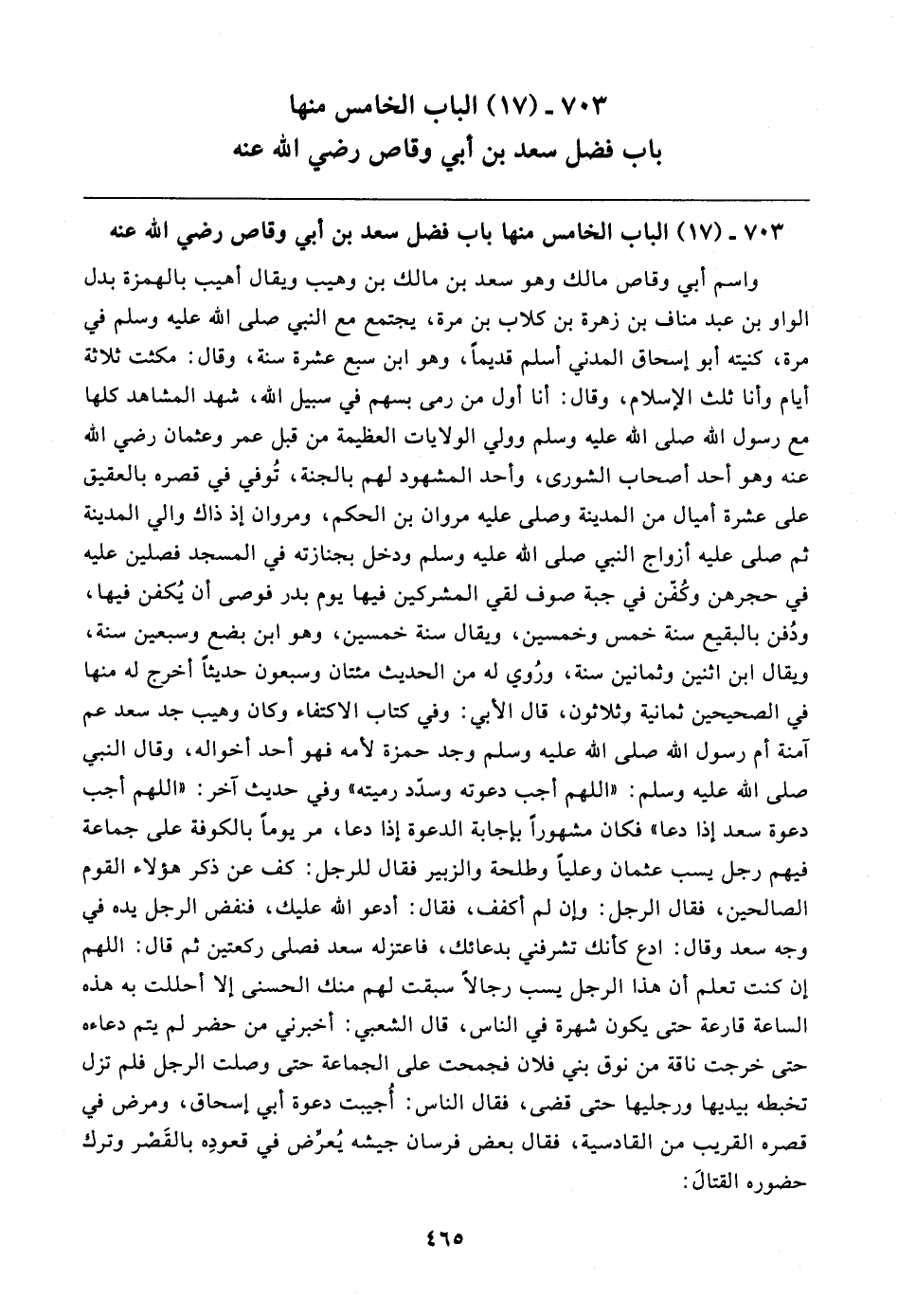 ٧٠٣ - (١٧) الباب الخامس منها باب فضل سعد بن أبي وقاص رضي الله عنه