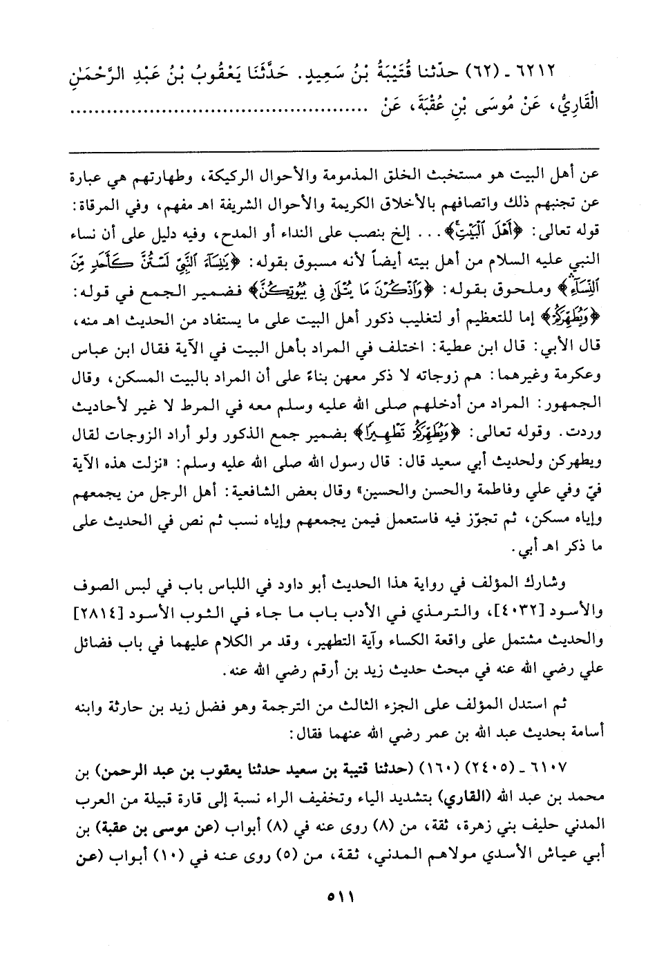 ٦٢١٢ - (٦٢) حدَّثنا قُتَيبَةُ بْنُ سَعِيدٍ. حَدَّثَنَا يَعْقُوبُ بْنُ عَبدِ الرَّحْمَنِ الْقَارِيُّ، عَنْ مُوسَى بْنِ عُقْبَةَ، عَنْ