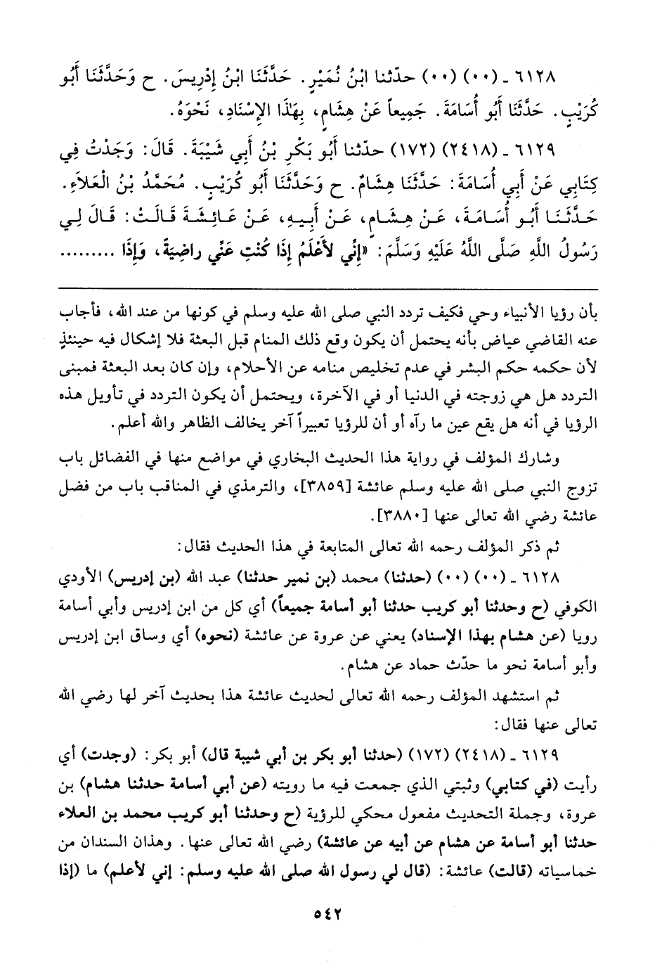 ٦١٢٨ - (٠٠) (٠٠) (حدثنا) محمد (بن نمير حدثنا) عبد الله (بن إدريس) الأودي الكوفي (ح وحدثنا أبو كريب حدثنا أبو أسامة جميعًا) أي كل من ابن إدريس وأبي أسامة رويا (عن هشام بهذا الإسناد) يعني عن عروة عن عائشة (نحوه) أي وساق ابن إدريس وأبو أسامة نحو ما حدّث حماد عن هشام.