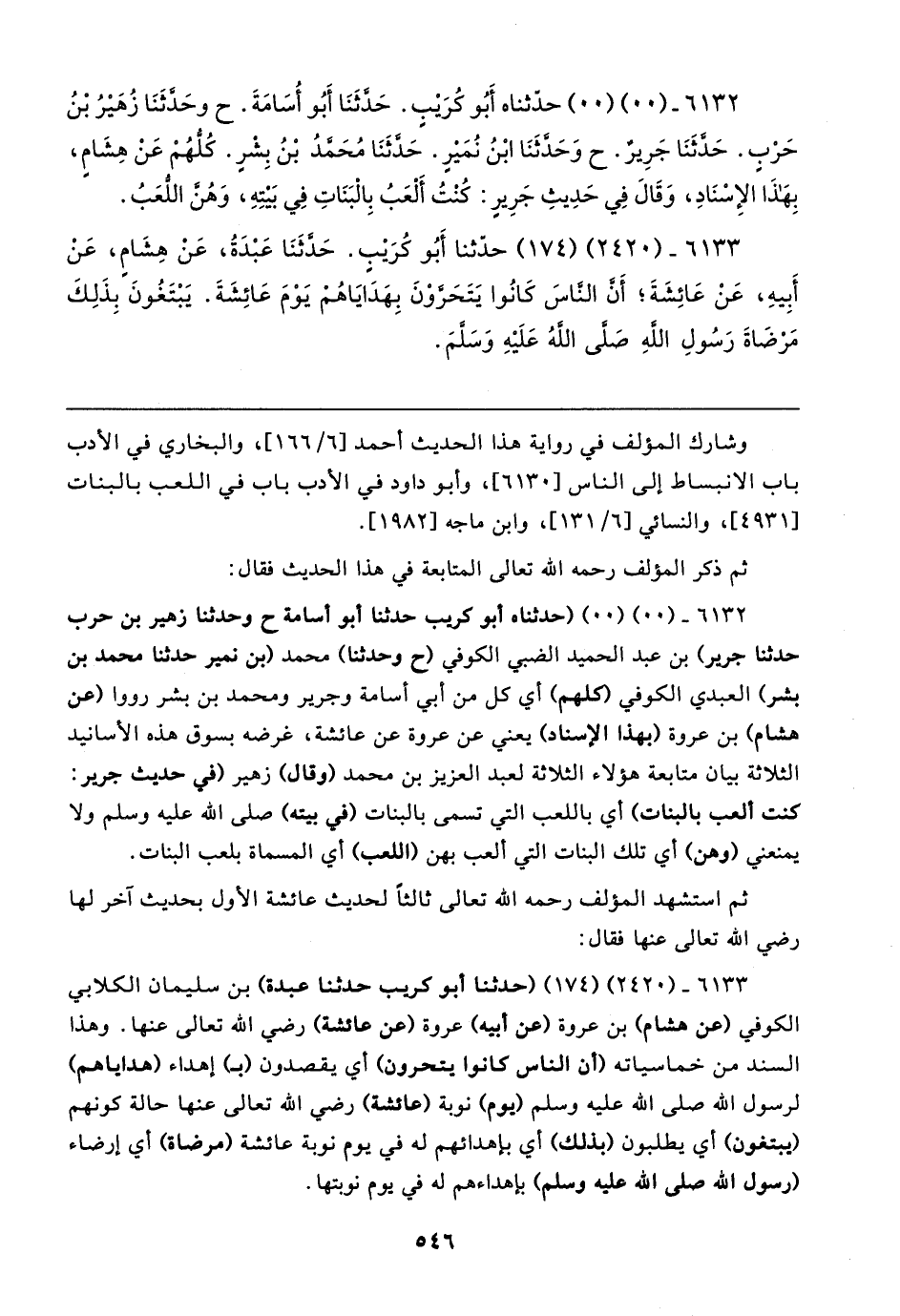 ٦١٣٢ - (٠٠) (٠٠) حدّثناه أَبُو كُرَيبٍ. حَدَّثَنَا أَبُو أُسَامَةَ. ح وحَدَّثَنَا زُهَيرُ بْنُ حَرْبٍ. حَدَّثَنَا جَرِيرٌ. ح وَحَدَّثَنَا ابْنُ نُمَيرٍ. حَدَّثَنَا مُحَمَّدُ بْنُ بِشرٍ. كُلُّهُمْ عَنْ هِشَامٍ، بِهَذَا الإِسْنَادِ، وَقَال فِي حَدِيثِ جَرِيرٍ: كُنْتُ أَلْعَبُ بِالْبَنَاتِ فِي بَيتِهِ، وَهُنَّ اللُّعَبُ.