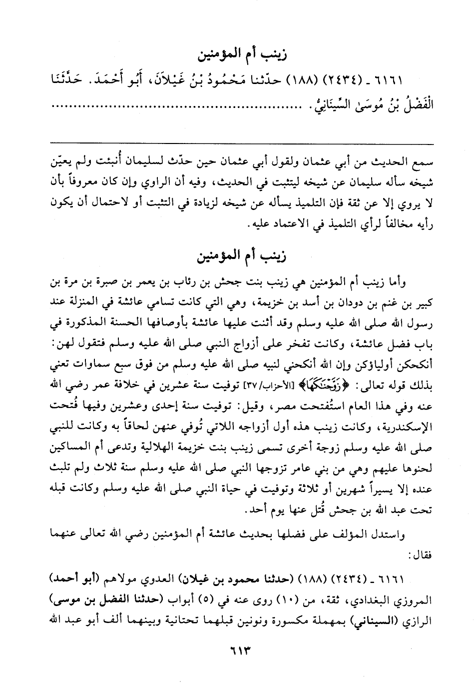 ٦١٦١ - (٢٤٣٤) (١٨٨) (حدثنا محمود بن غيلان) العدوي مولاهم (أبو أحمد) المروزي البغدادي، ثقة، من (١٠) روى عنه في (٥) أبواب (حدثنا الفضل بن موسى) الرازي (السيناني) بمهملة مكسورة ونونين قبلهما تحتانية وبينهما ألف أبو عبد الله