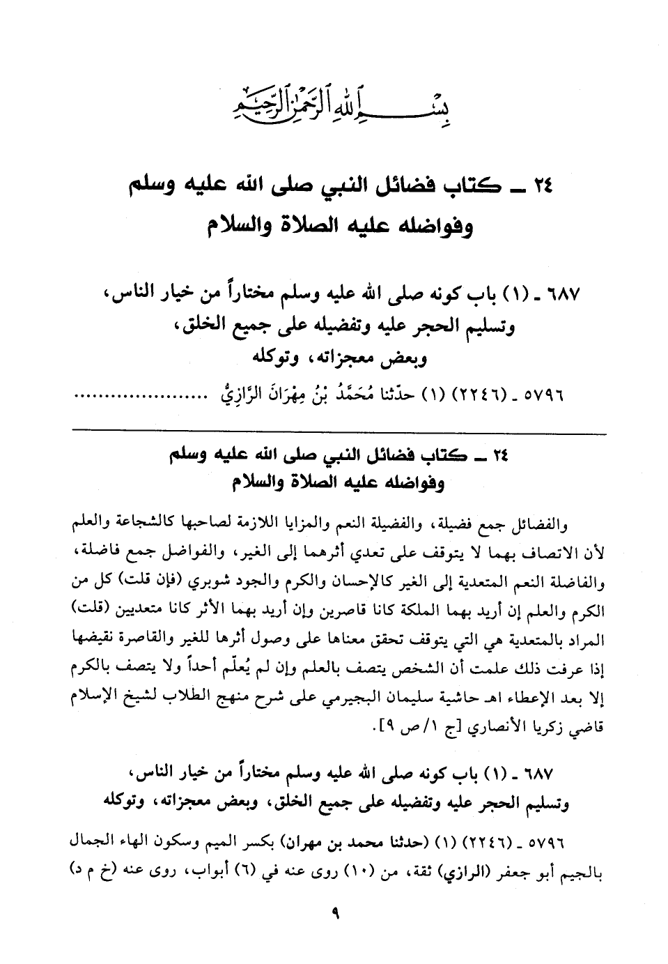 ٢٤ - كتاب فضائل النبي صلى الله عليه وسلم وفواضله عليه الصلاة والسلام