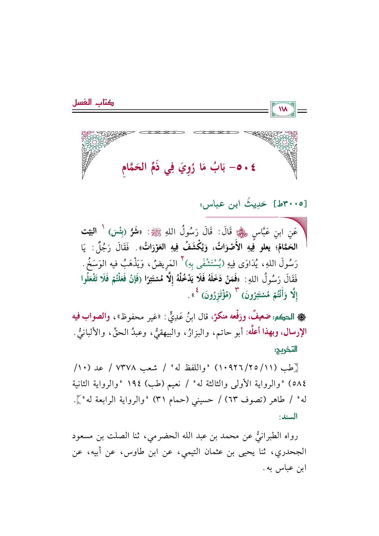 ٥٠٤ - بَابُ مَا رُوِيَ فِي ذَمِّ الحَمَّامِ