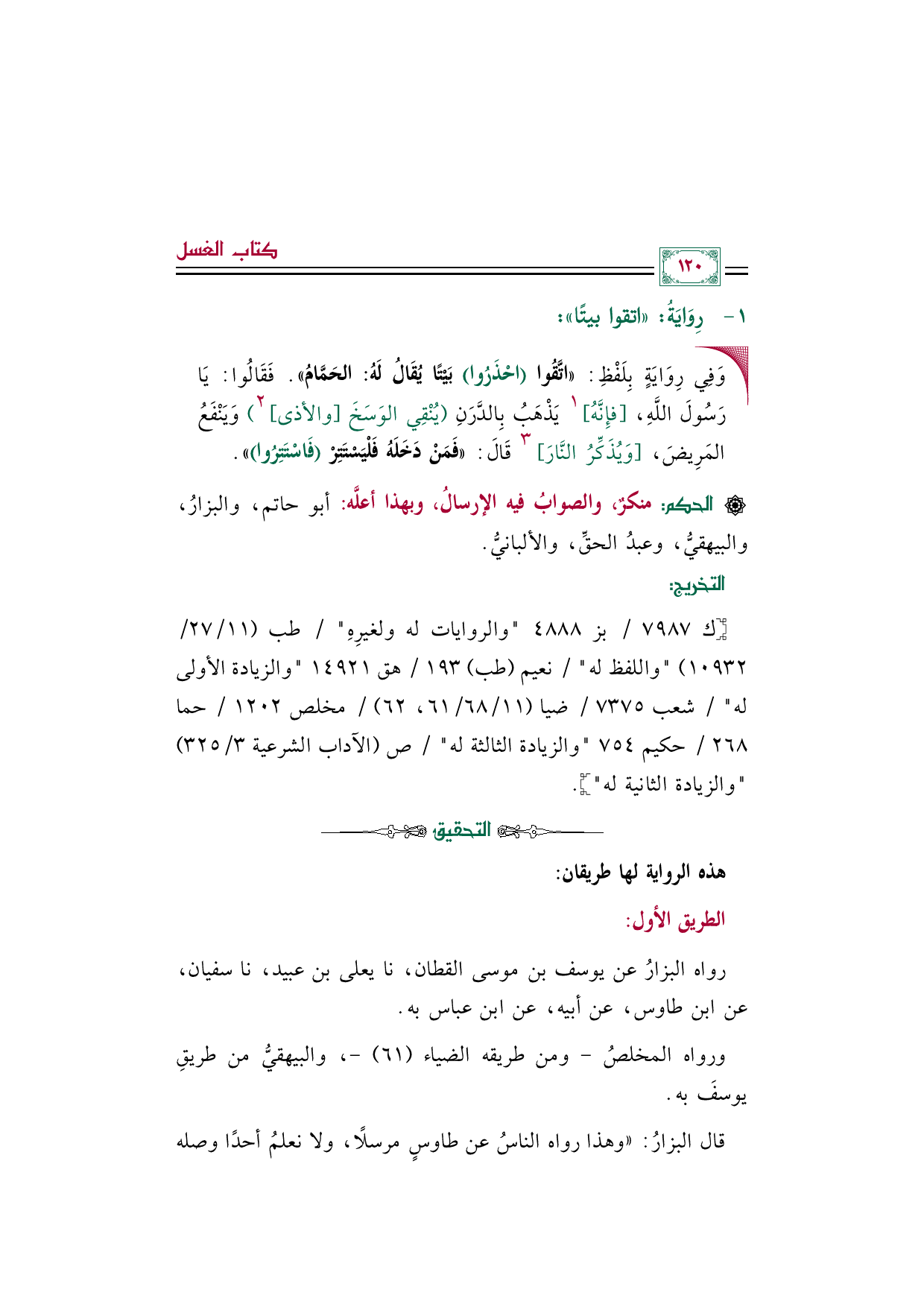 رواه البزارُ عن يوسف بن موسى القطان، نا يعلى بن عبيد، نا سفيان، عن ابن طاوس، عن أبيه، عن ابن عباس به.