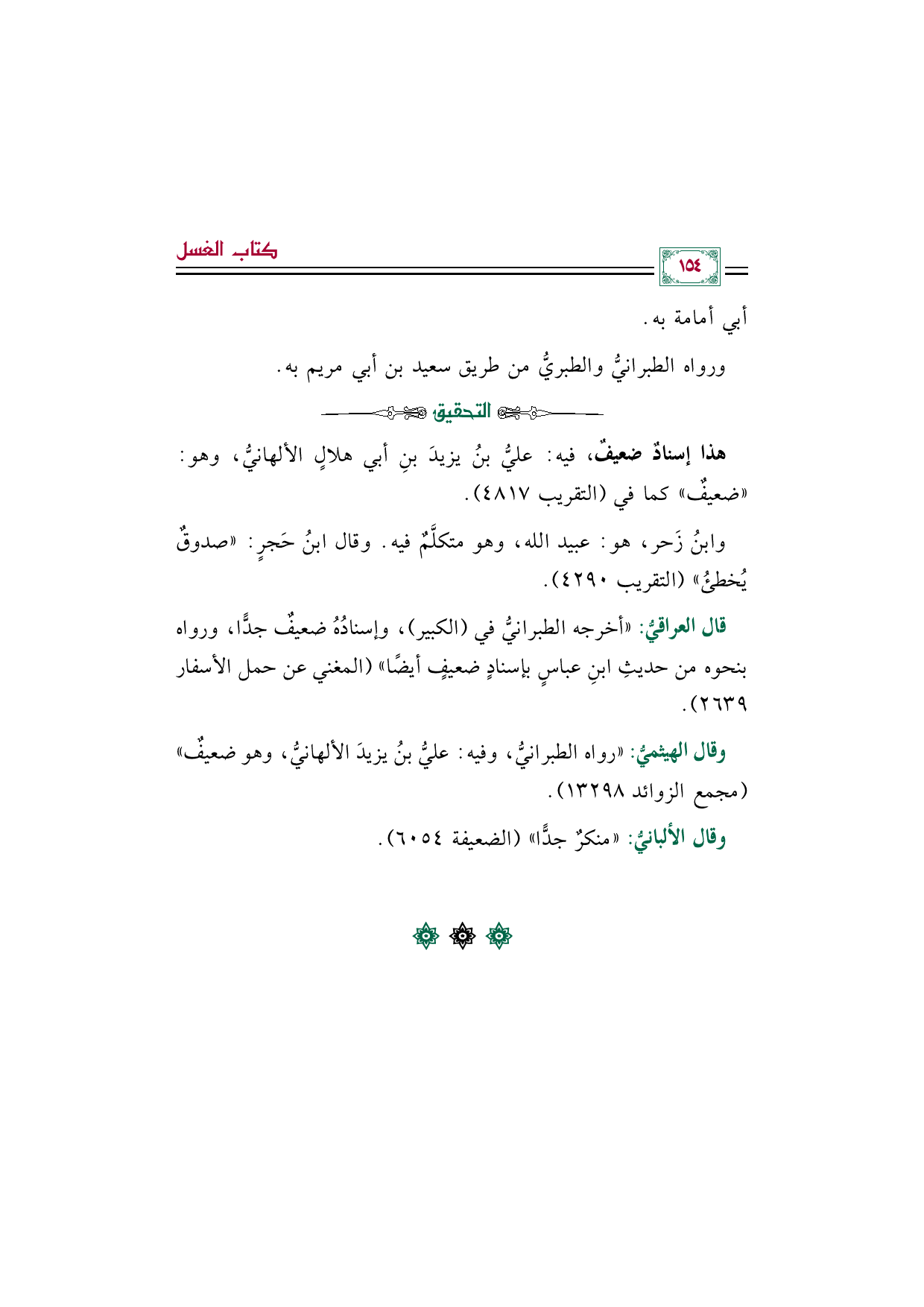 وقال الهيثميُّ: "رواه الطبرانيُّ، وفيه: عليُّ بنُ يزيدَ الألهانيُّ، وهو ضعيفٌ" (مجمع الزوائد ١٣٢٩٨).