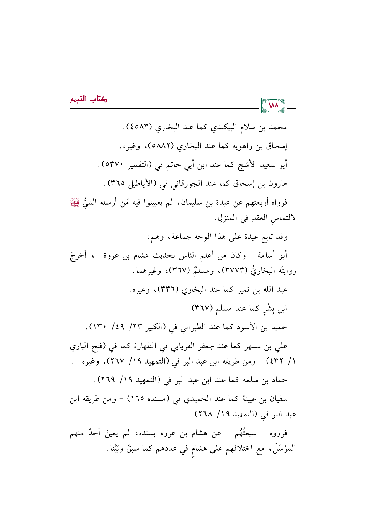 فرووه -سبعتُهُم- عن هشام بن عروة بسنده، لم يعينْ أحدٌ منهم المرْسَلَ، مع اختلافهم على هشامٍ في عددهم كما سبقَ وبَيَّنا.