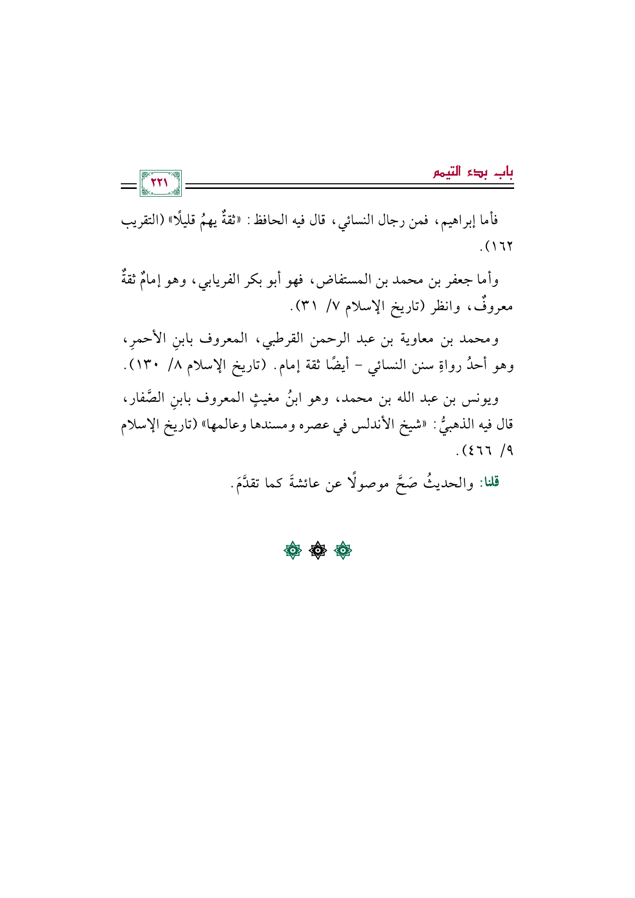 فأما إبراهيم، فمن رجال النسائي، قال فيه الحافظ: "ثقةٌ يهمُ قليلًا" (التقريب ١٦٢).